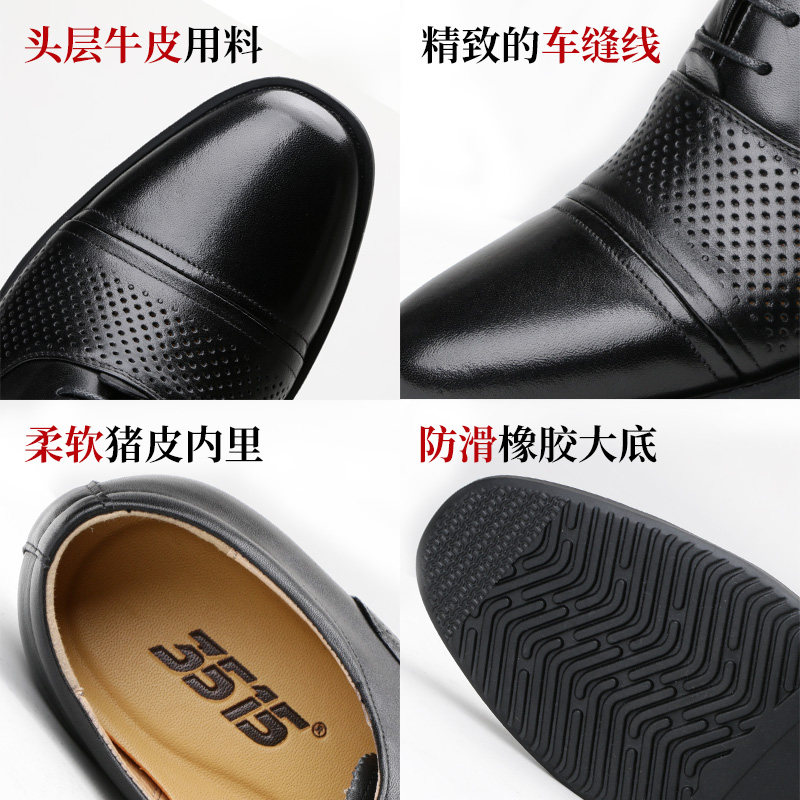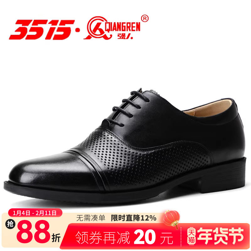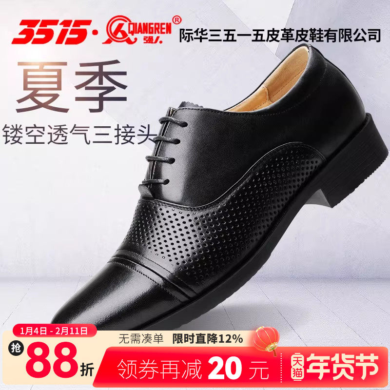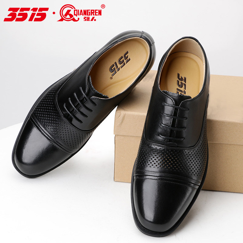 📚 3515强人男士皮鞋商务正装男鞋夏季透气镂空正品舒适休闲黑色皮鞋