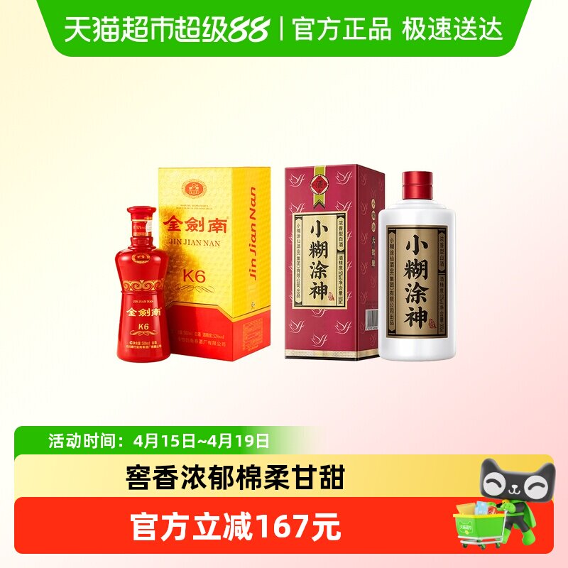 68¥ CZ005 zPdL5TZ3woz¥ https://m.tb.cn/h.iK1N625 小糊涂神(普神)52度500ml单瓶+剑南春白酒金剑南K652度500ml单瓶 --------------------- 【原售价】366元 【现售价】346元。