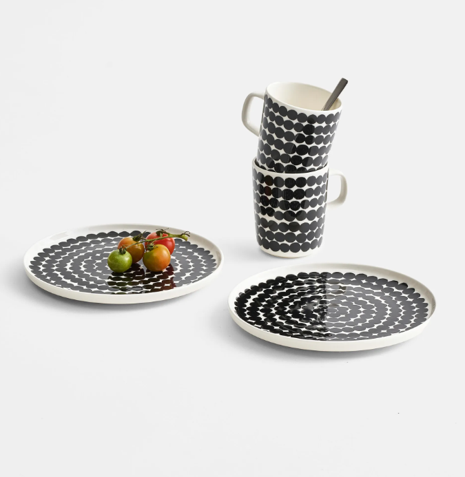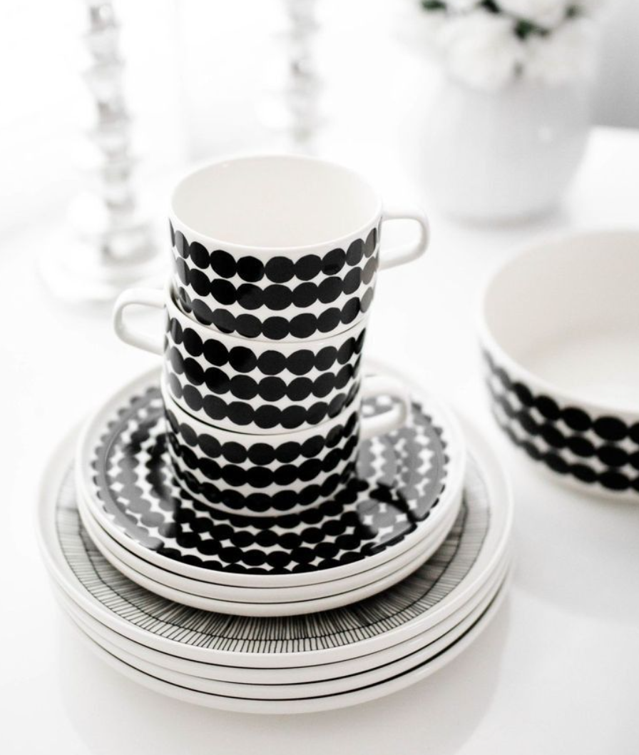 📚 芬兰Marimekko Rasymatto黑波点陶瓷马克杯茶杯盘子饭碗北欧餐具