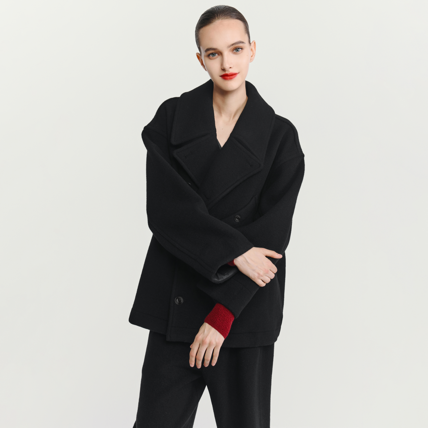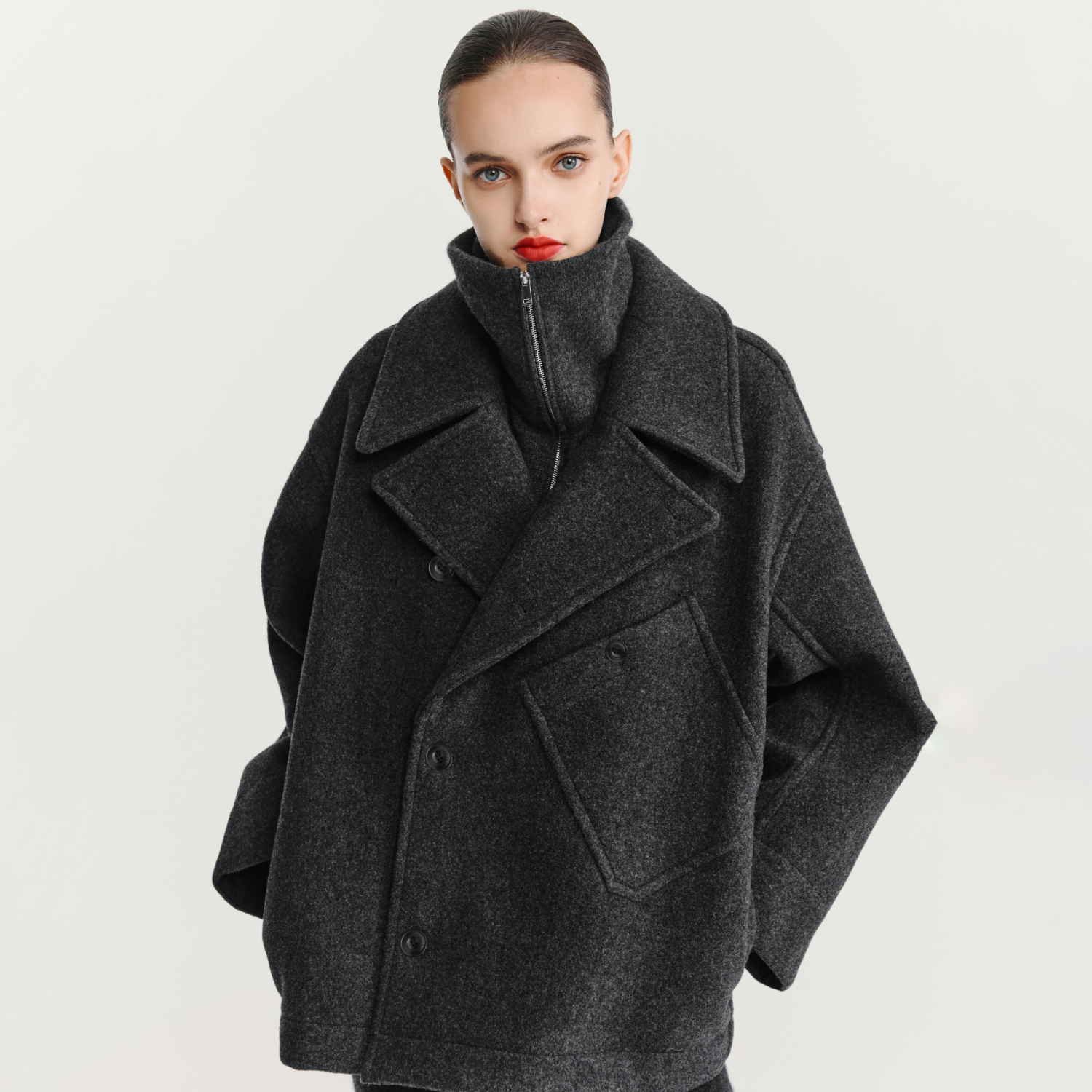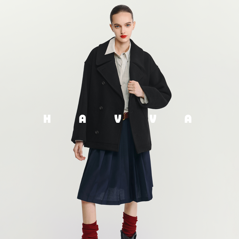 📚 HAVVA口碑推荐设计感大口袋廓形毛呢大衣女毛呢外套2025冬N3-4100