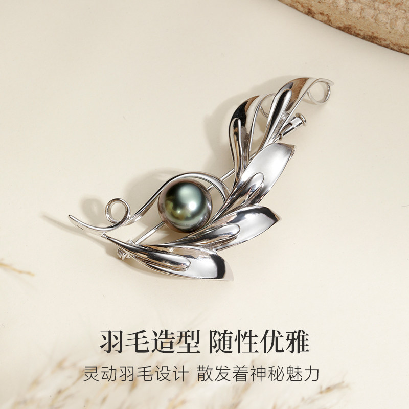 📚 GiO珠宝大溪地海水黑珍珠胸针925银正圆强光女精致优雅高级感轻奢