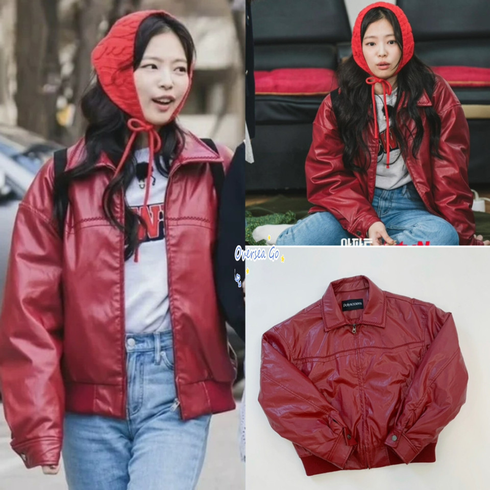 📚 现货 Polysooem 金智妮 JENNIE同款美式复古PU皮衣机车夹克外套女