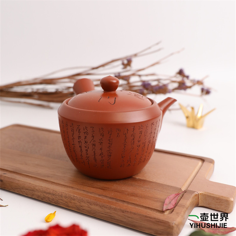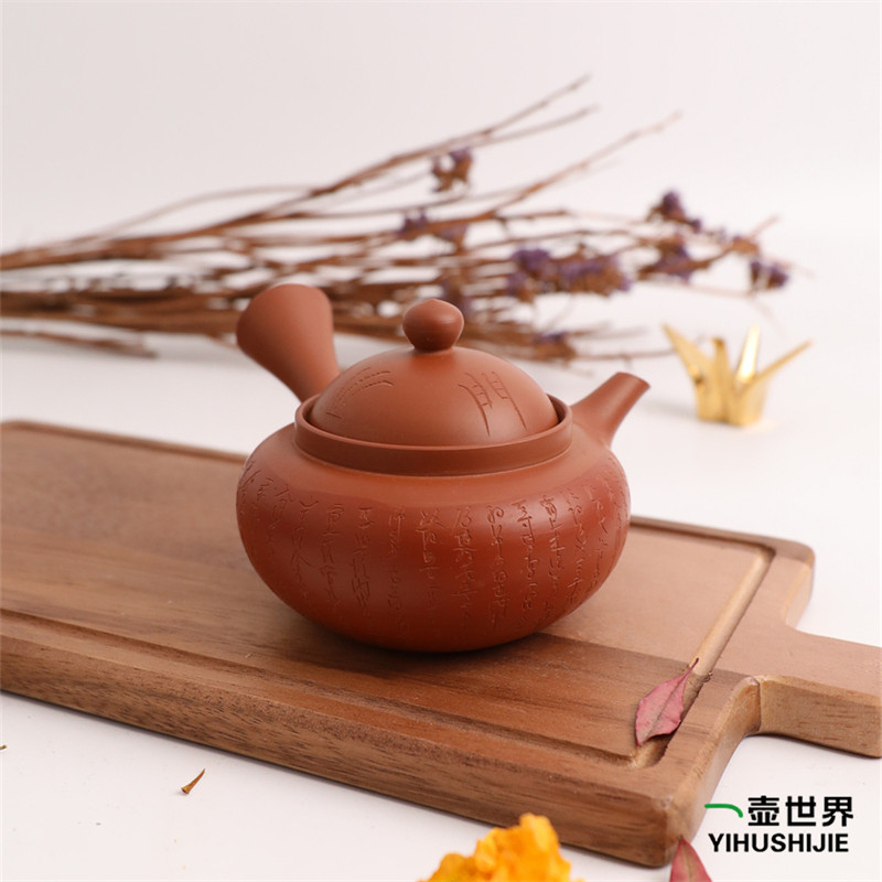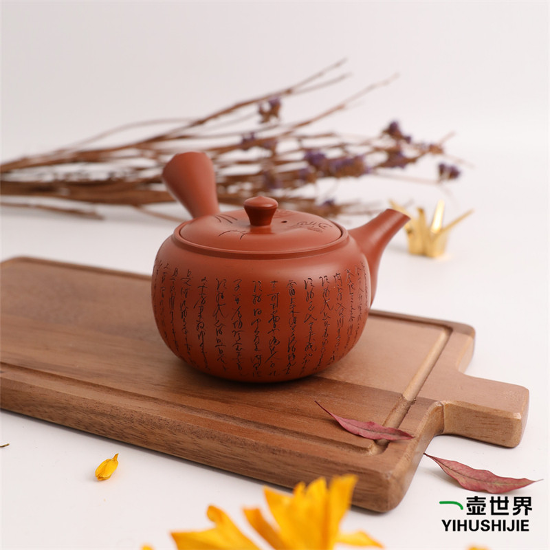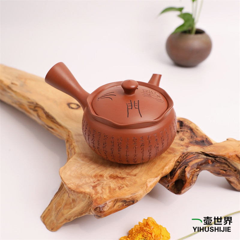 📚 日本常滑烧急须玉阳朱泥鸿门之会刻字壶纯手工侧把日式紫砂陶茶壶