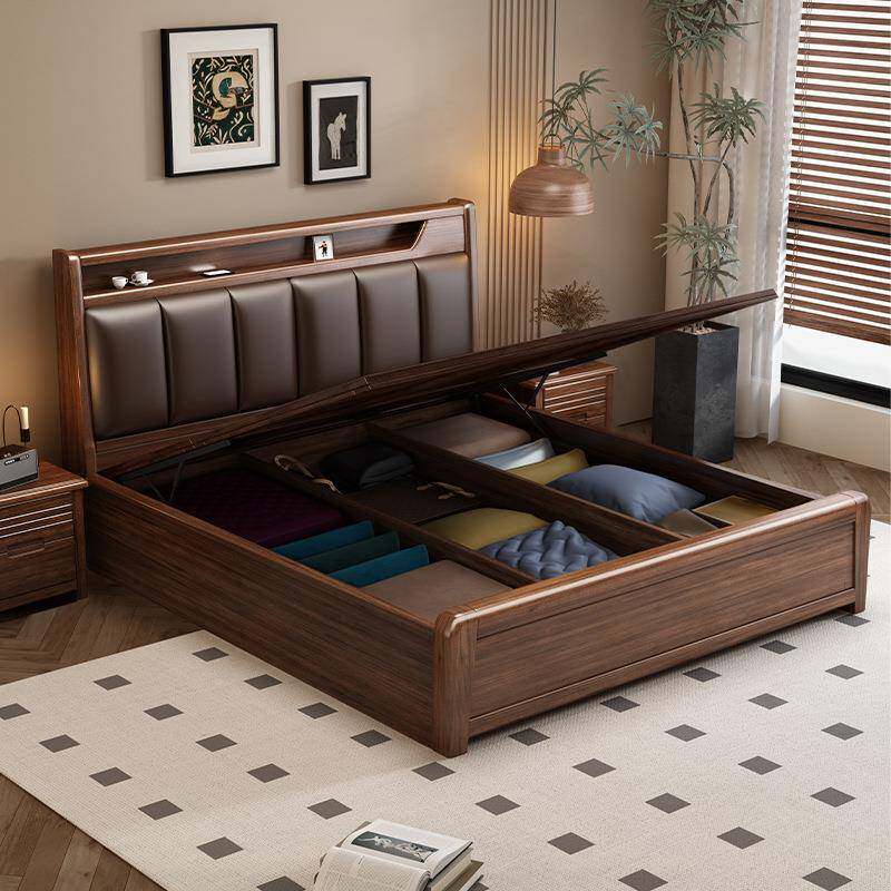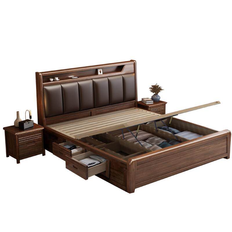 📚 主卧卧室实木床1米8双人床现代简约带储物气压软靠背家用1米5的床