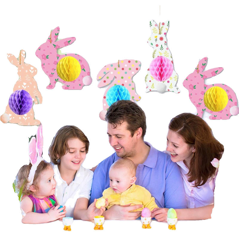 📚 复活节派对彩蛋兔子拉旗横幅纸蜂窝挂饰螺旋挂件彩条happy easter