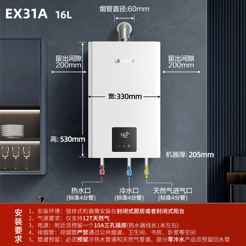 📚 [鲸鲨系列]能率燃气热水器恒温水伺服抑菌降噪大升数16升EX31A