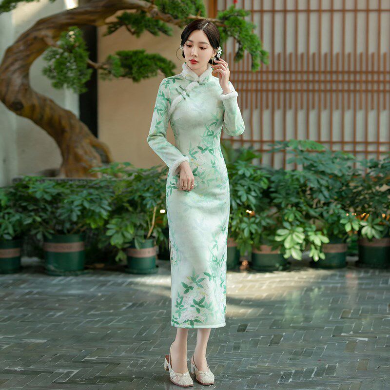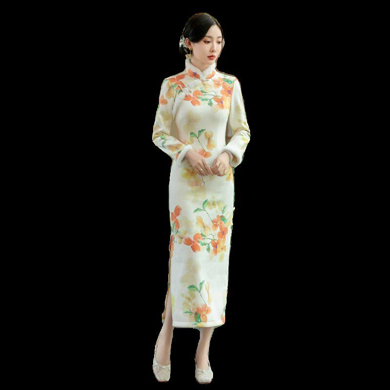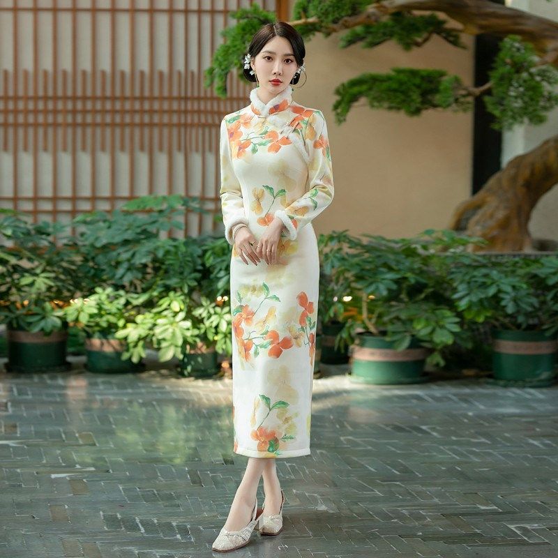 📚 2024改良旗袍裙秋冬款加绒加厚冬天新中式冬季大码微胖高贵晚礼服