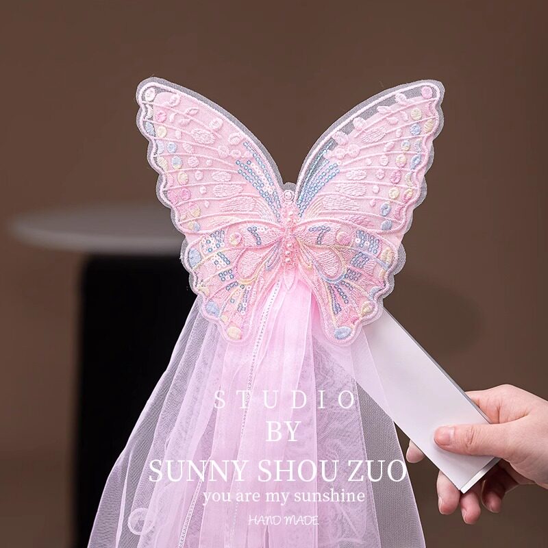 📚 新年公主蝴蝶结儿童飘带美人鱼发饰新中式发夹女宝宝百搭头饰后压