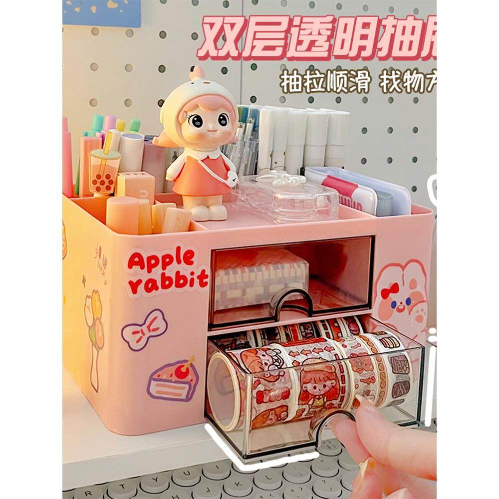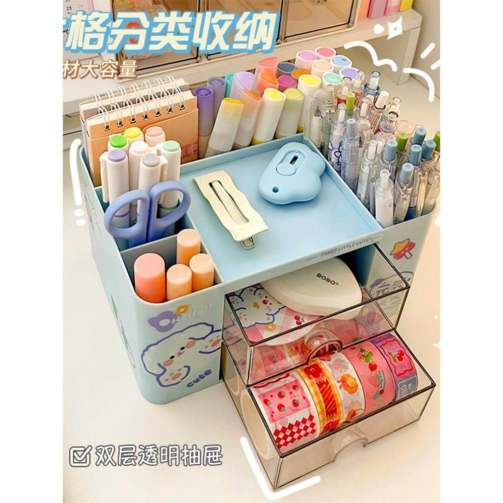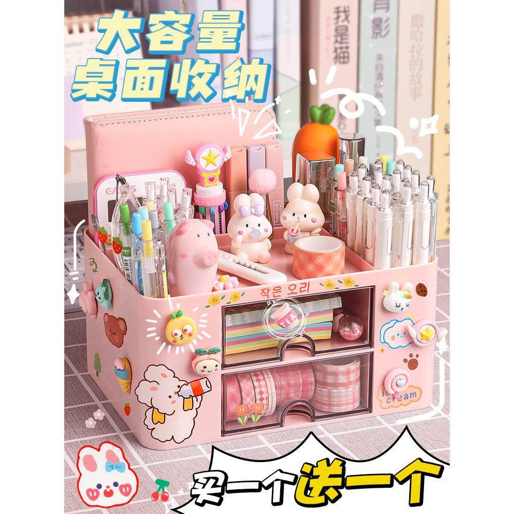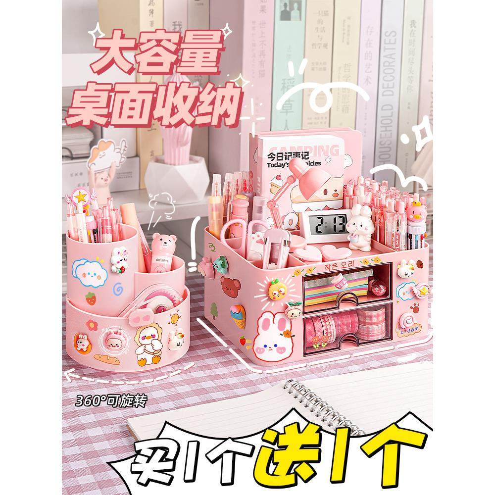 📚 笔筒收纳盒可爱的孩子女孩小学生桌面文具收纳盒多功能大容量笔盒书桌笔筒一体的男孩女孩笔桶创意无障碍奢华