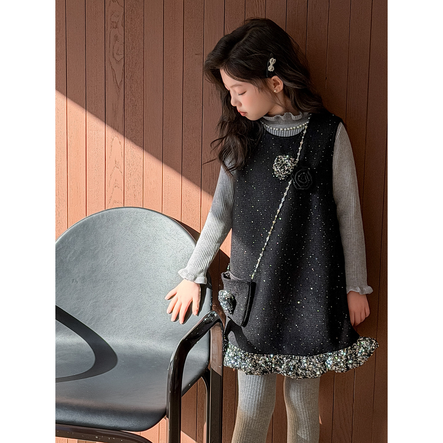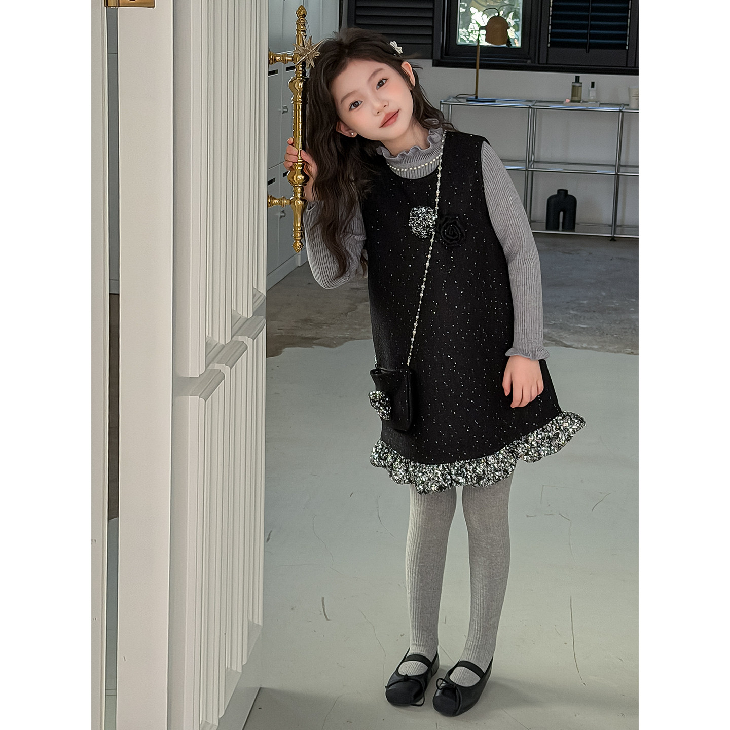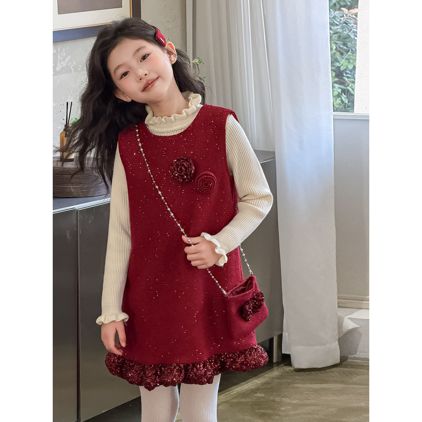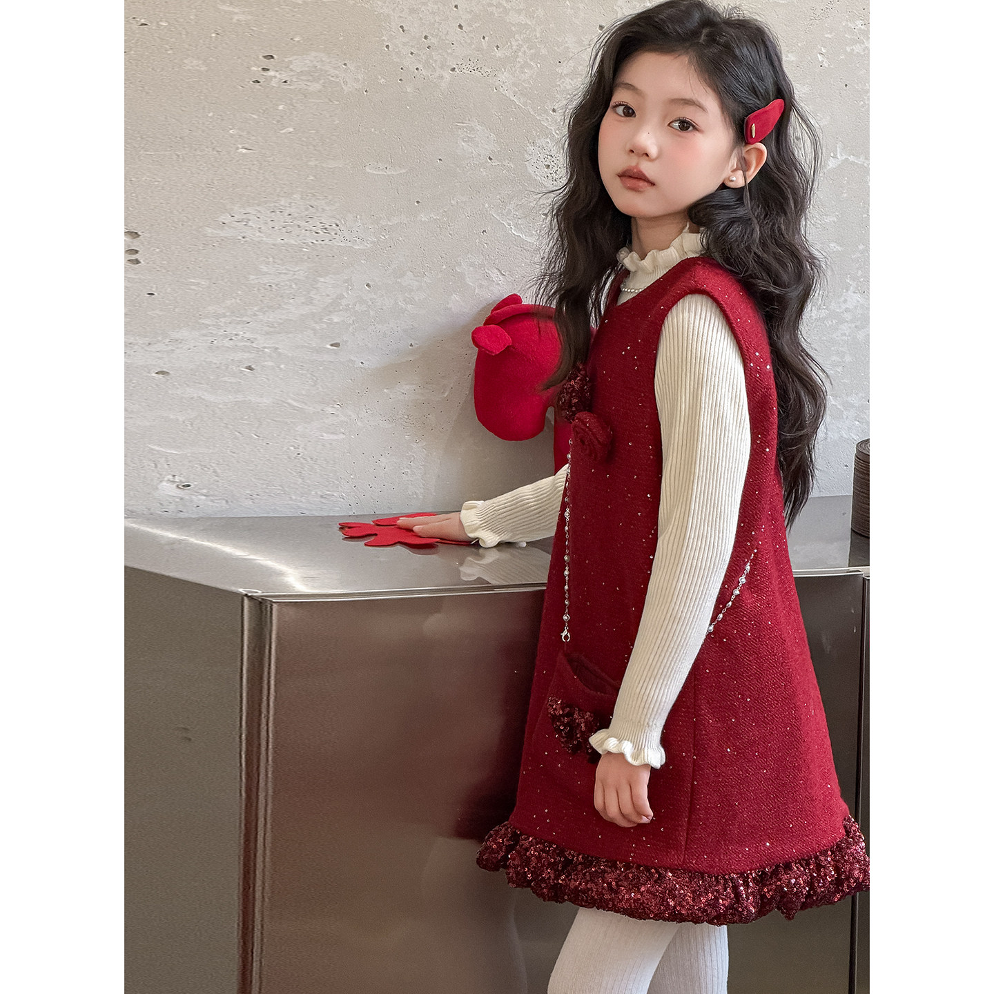 📚 波拉女童连衣裙套装高端轻奢冬季新款儿童新年装女孩洋气背心裙子