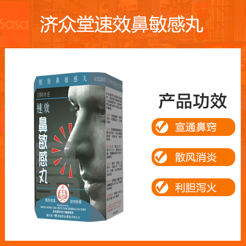📚 济众堂速效鼻敏感丸180粒 鼻炎流鼻水散风消炎保健品香港直邮正品