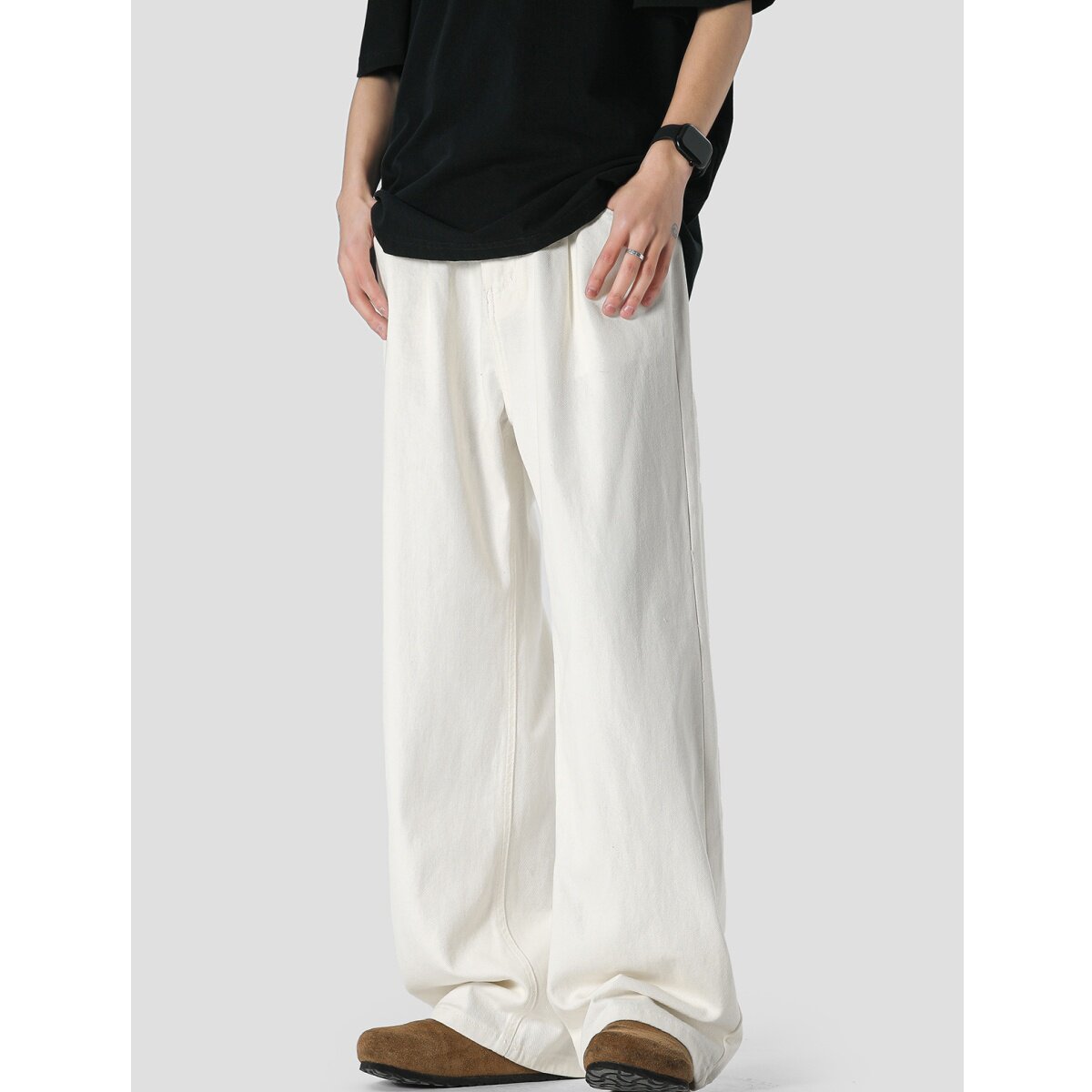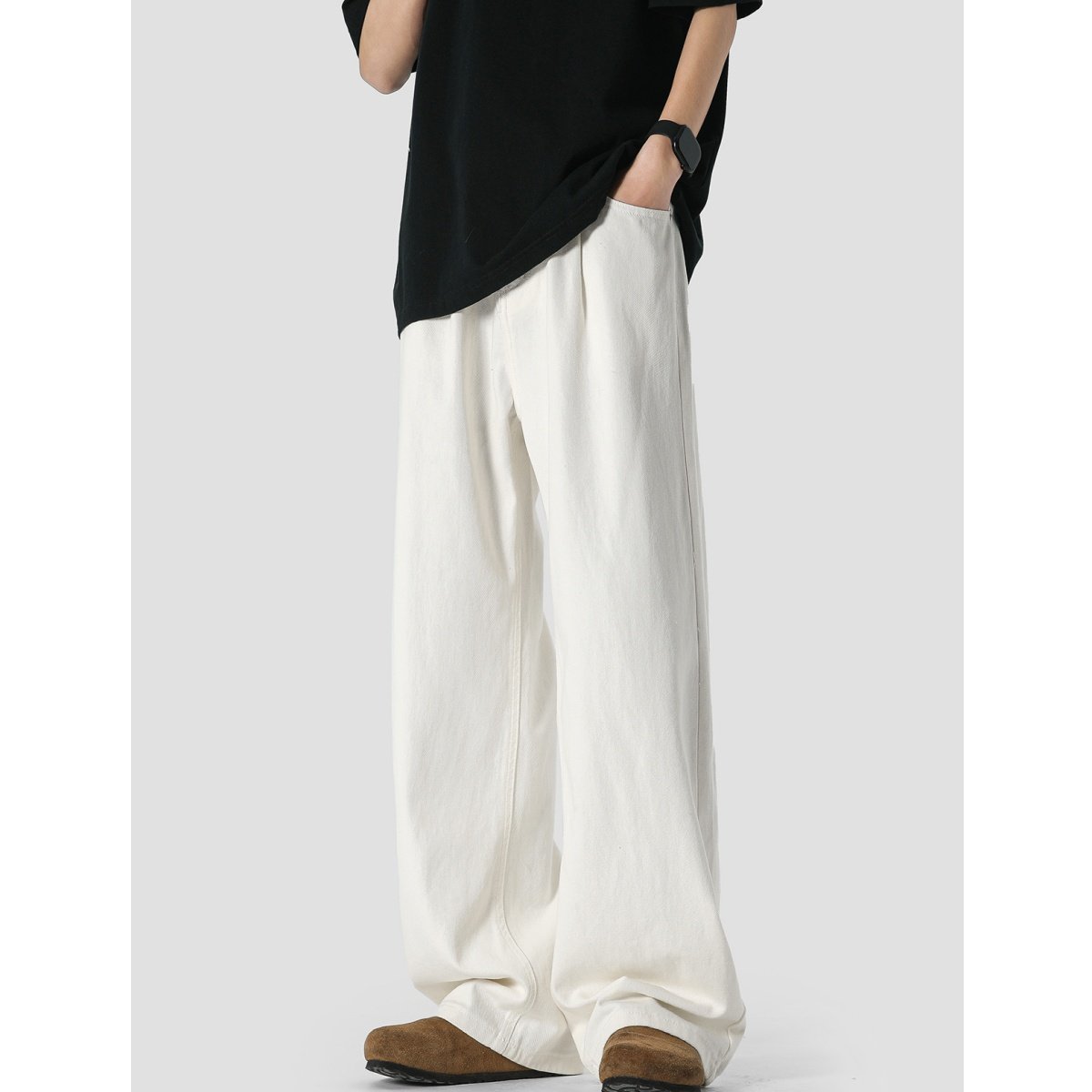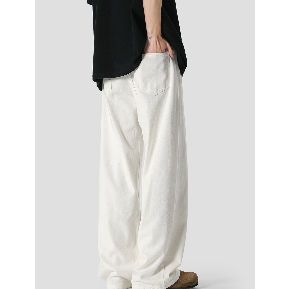 📚 潮牌百搭大码白色牛仔裤男美式高街阔腿裤子ins痞帅直筒垂感长裤