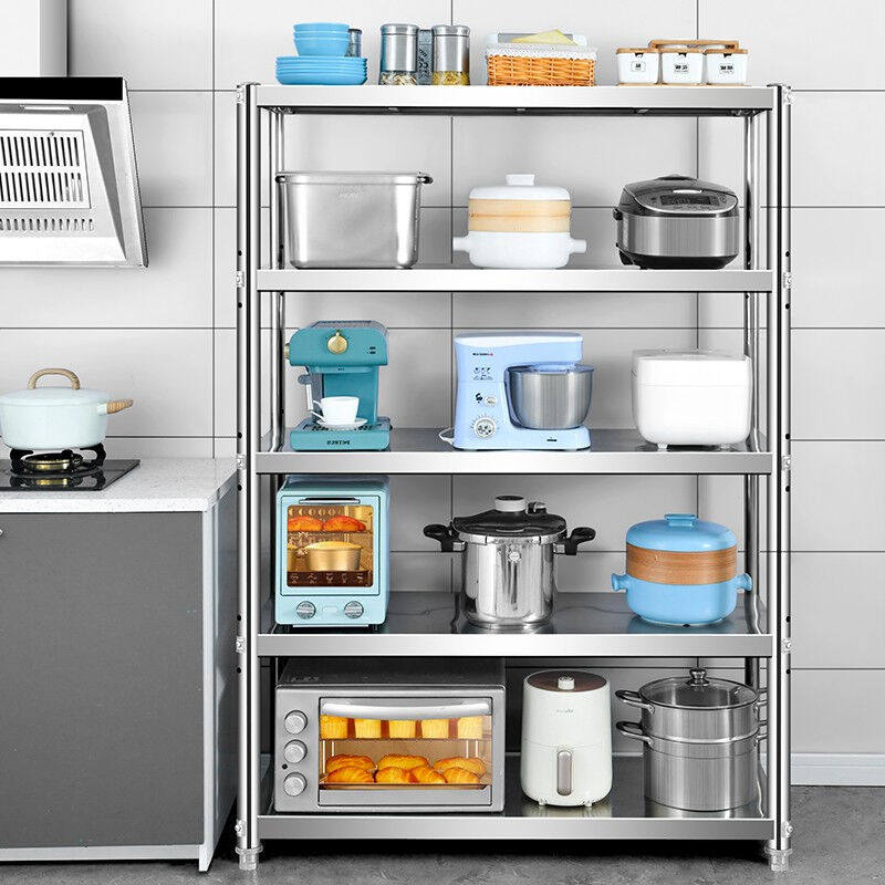 📚 亿肃河置物架不锈钢厨房用具落地架货架家用层架多层收纳储物架钢