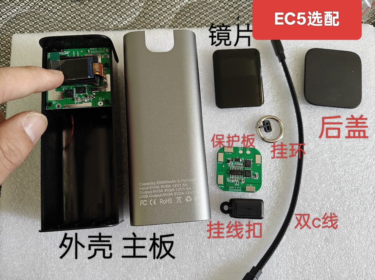 📚 强起彩屏sw6306铝合金100w带线/挂绳充电宝套件ccc 套料21700