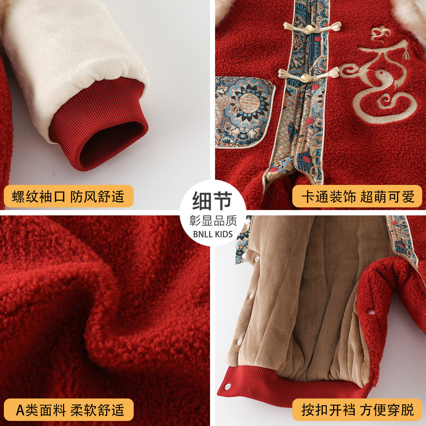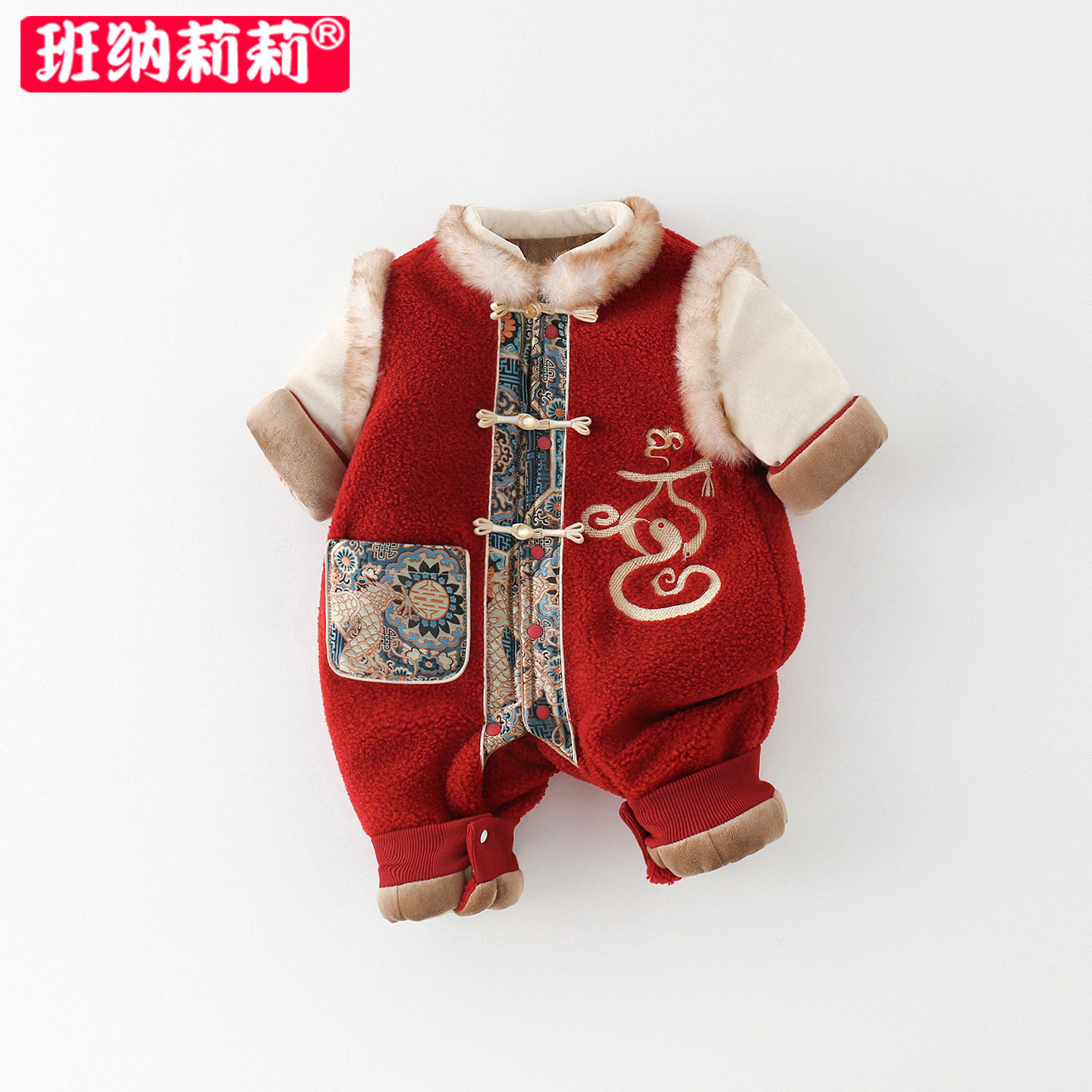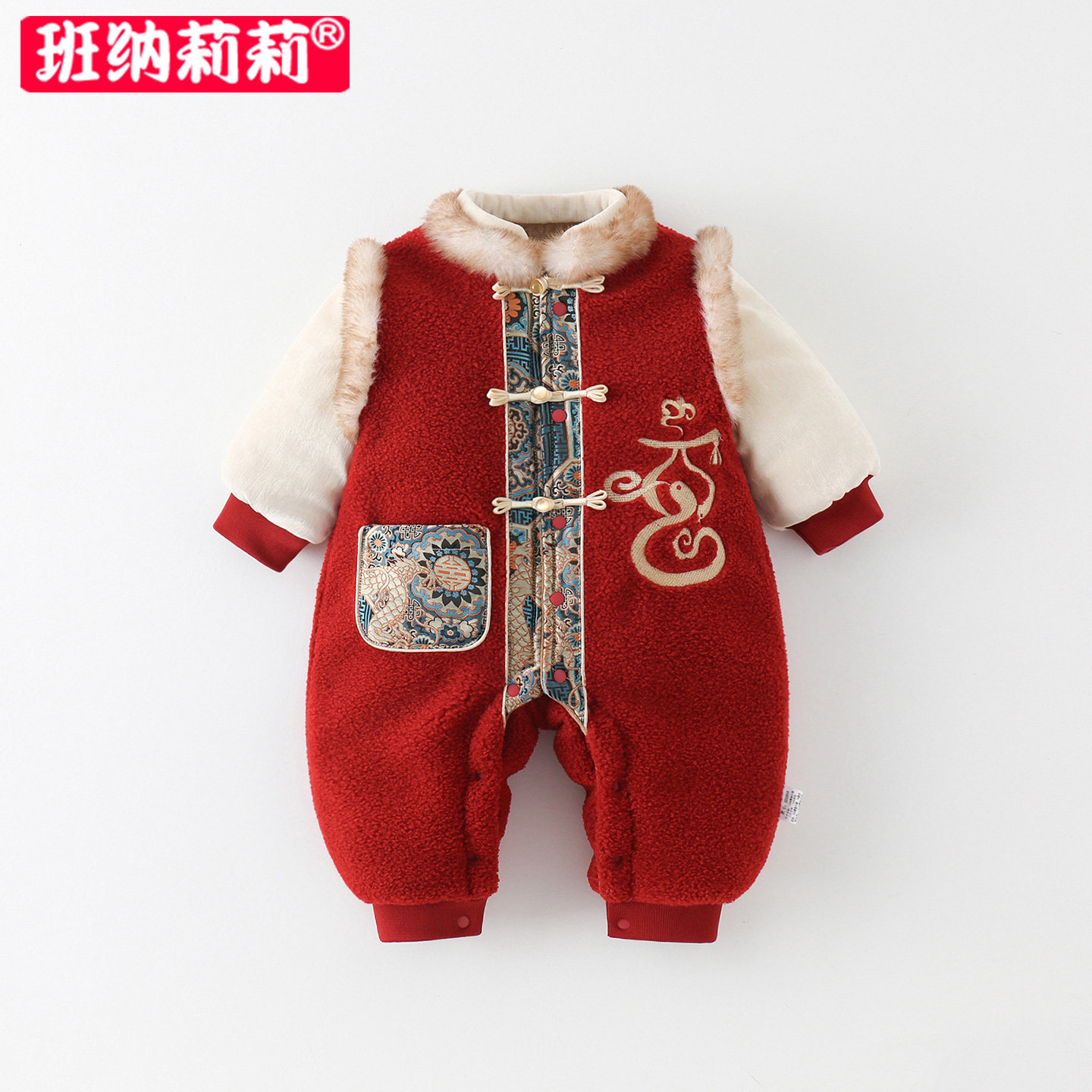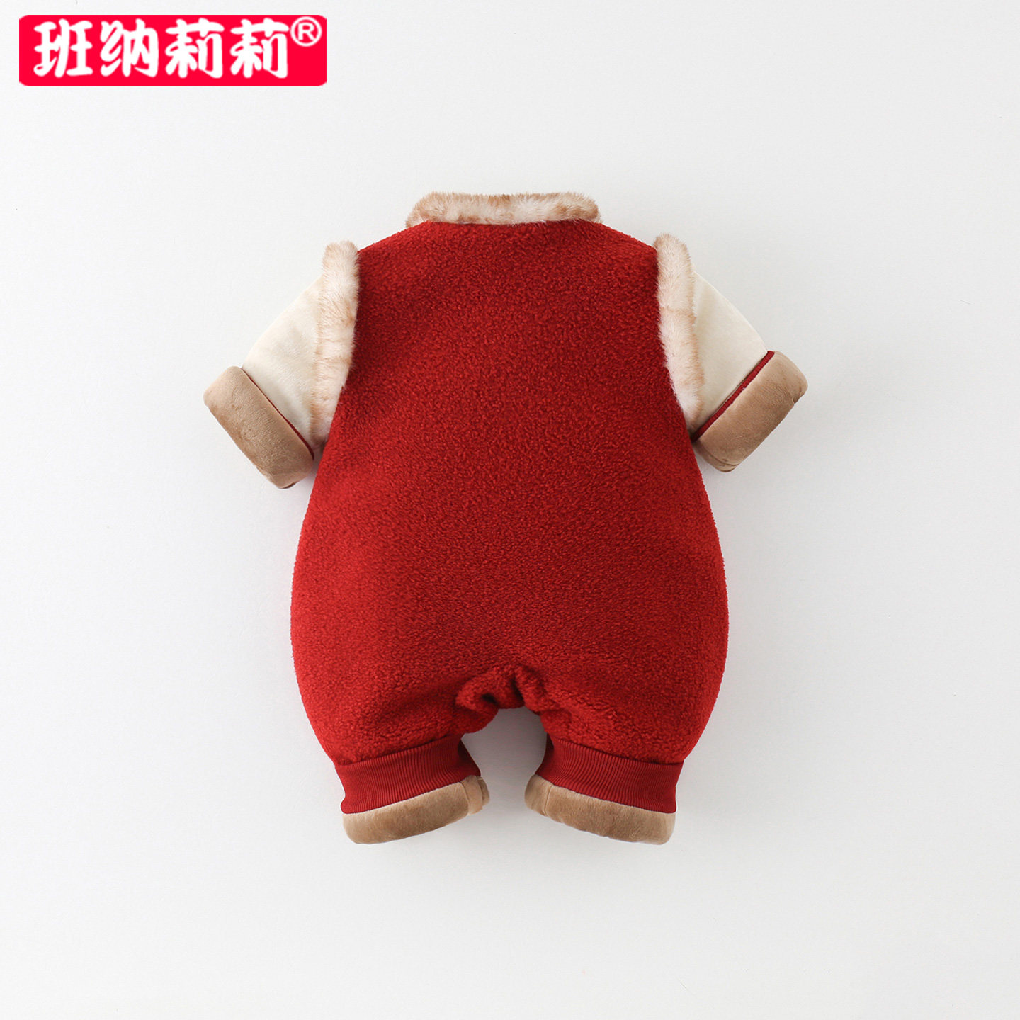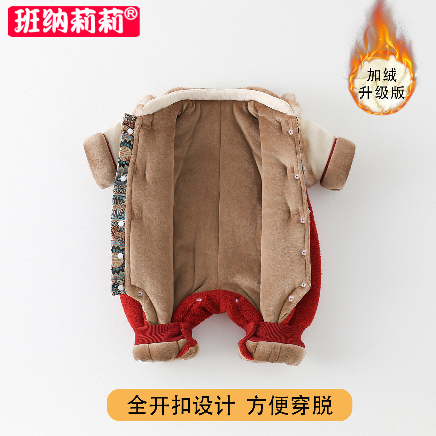 📚 婴儿过年衣服喜庆冬装新生宝宝拜年服连体衣冬季加厚外出新年哈衣