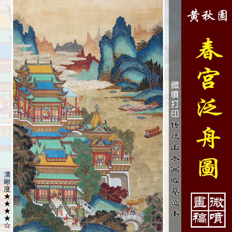 💥黄秋园春宫泛舟图微喷打印近现代名家山水画临摹绢布画稿亭台楼阁,惊艳入手!💖券后价仅19.7!