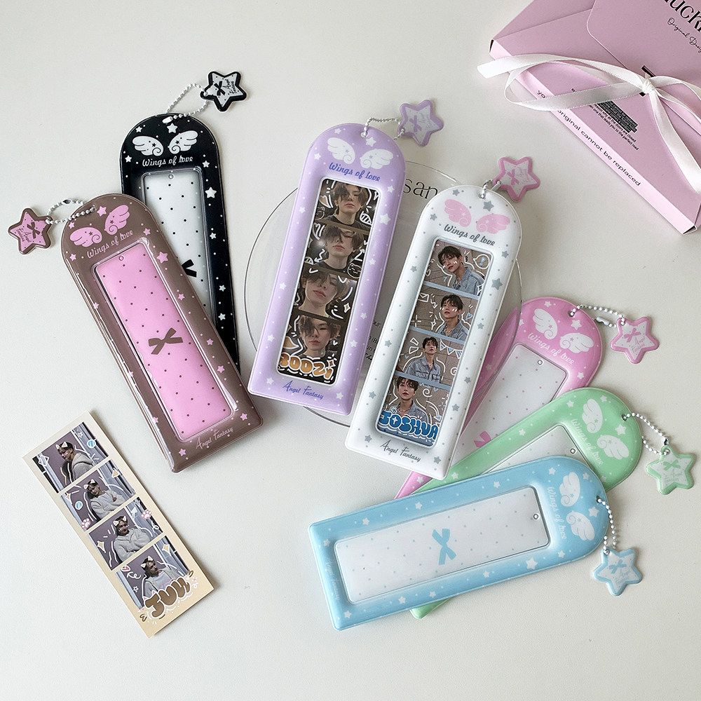 📚 韩版少女心卡通天使翅膀人生四格卡套追星四联挂件展示卡套书签套