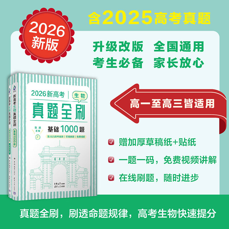 📚 【官方正版新书】2026新高考生物真题全刷:基础1000题(含2025真题) 张鹏 清华大学出版社 高中教辅生物升学辅导新高考