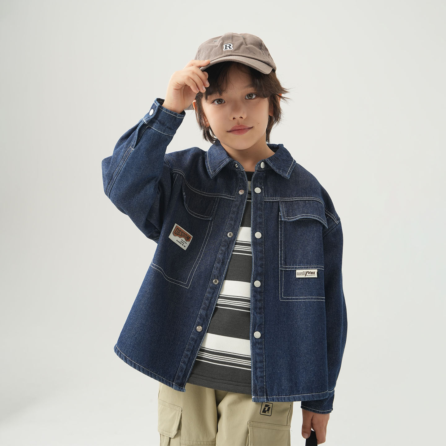 📚 清仓男童牛仔衬衫外套儿童一体绒上衣加厚秋冬款新款加绒男孩衬衣