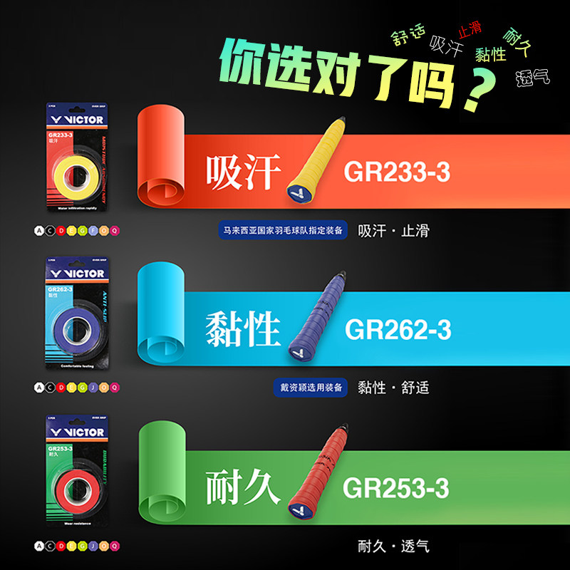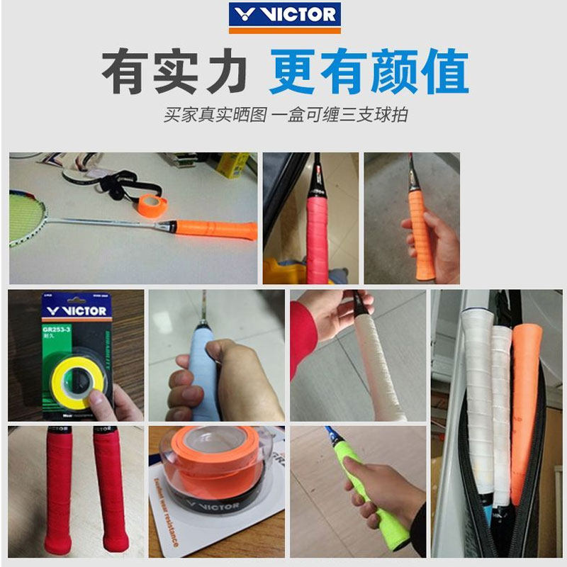 📚 VICTOR威克多胜利羽毛球拍握把手胶防滑吸汗带3条装GR233/253/262