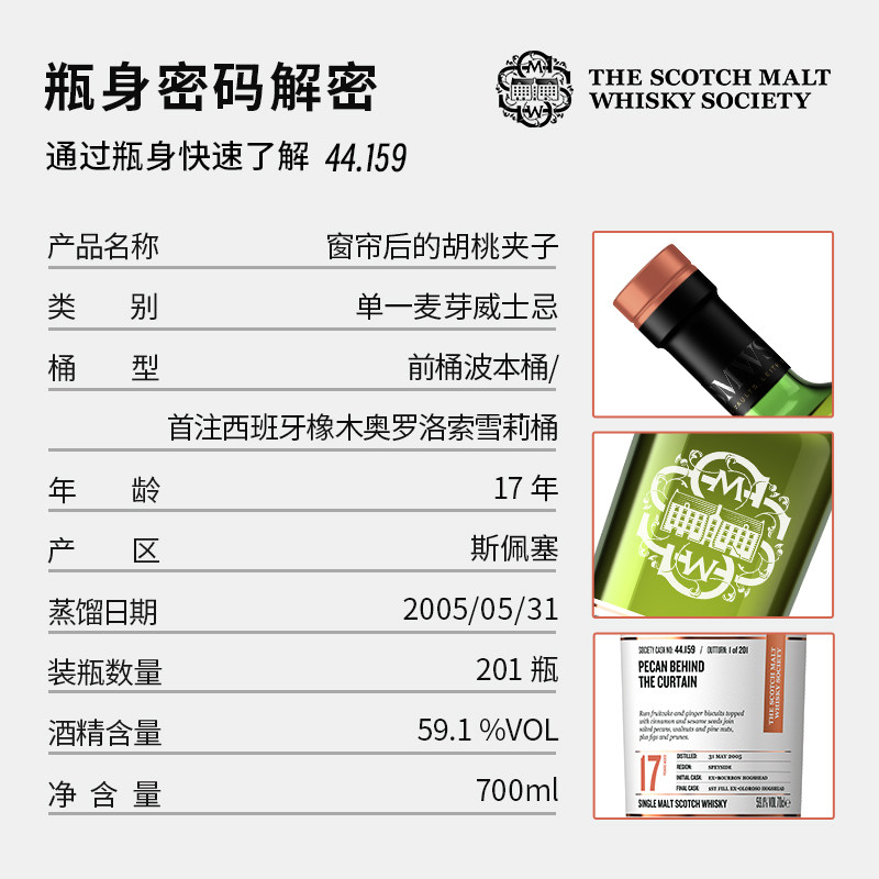 📚 SMWS 44.159 窗帘后的胡桃夹子 苏格兰进口 单一麦芽威士忌Whisky