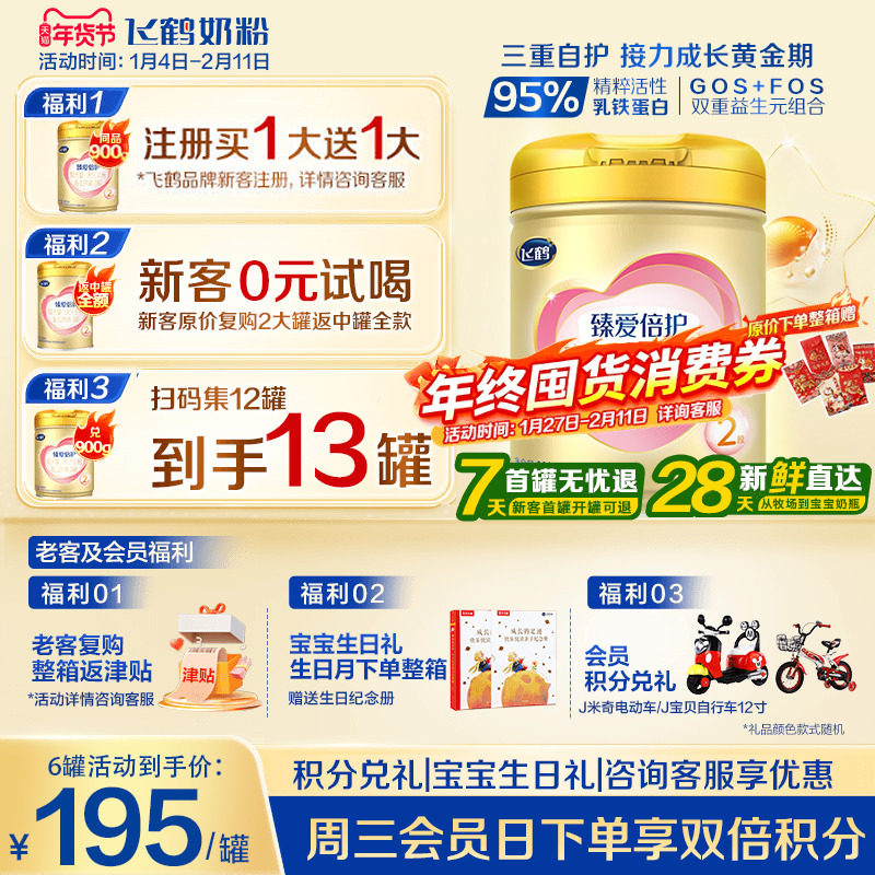 📚 咨询享优惠]飞鹤超级飞帆2段臻爱倍护婴儿奶粉二段900g含乳铁蛋白