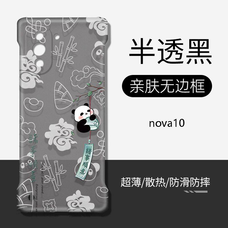 📚 适用于华为nova10手机壳硬壳透明无边框熊猫诸事顺意超薄防摔智选hinova10pro全包镜头不顶膜新款散热保护套