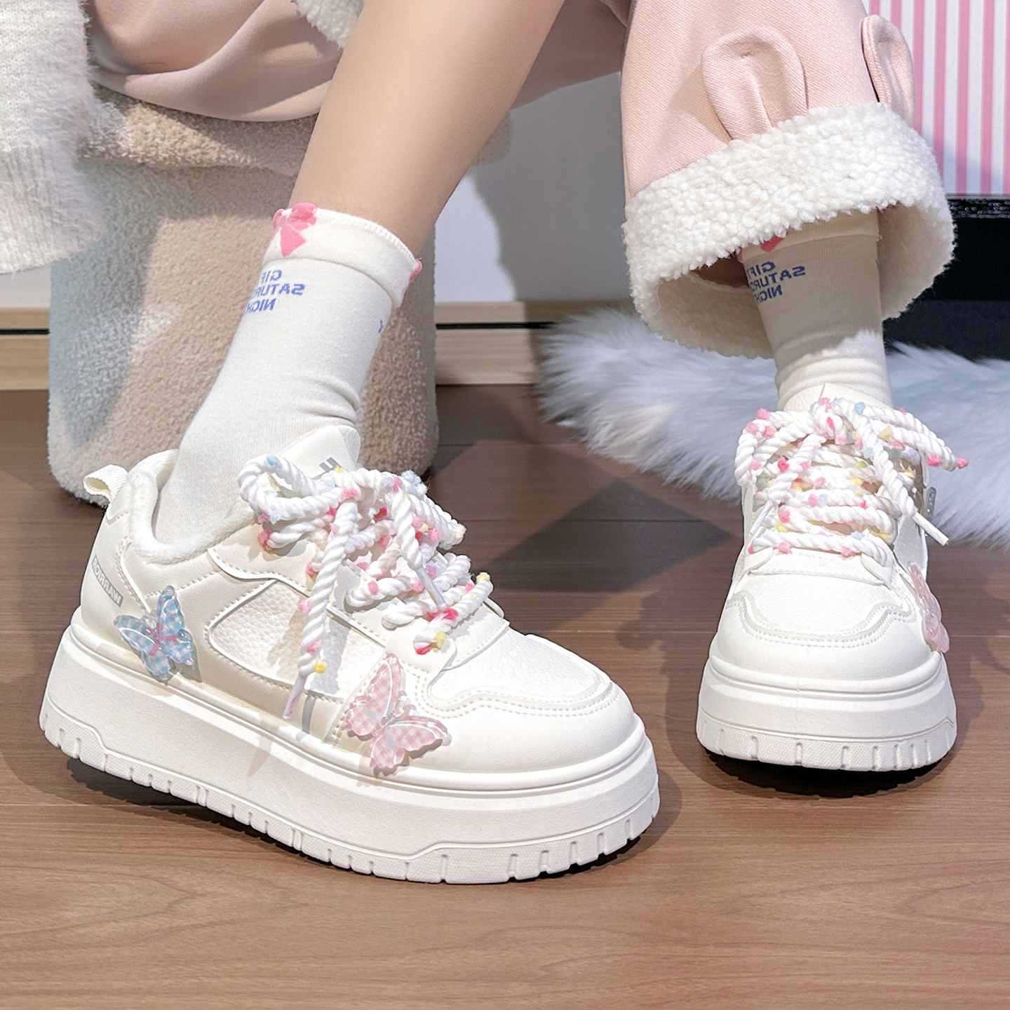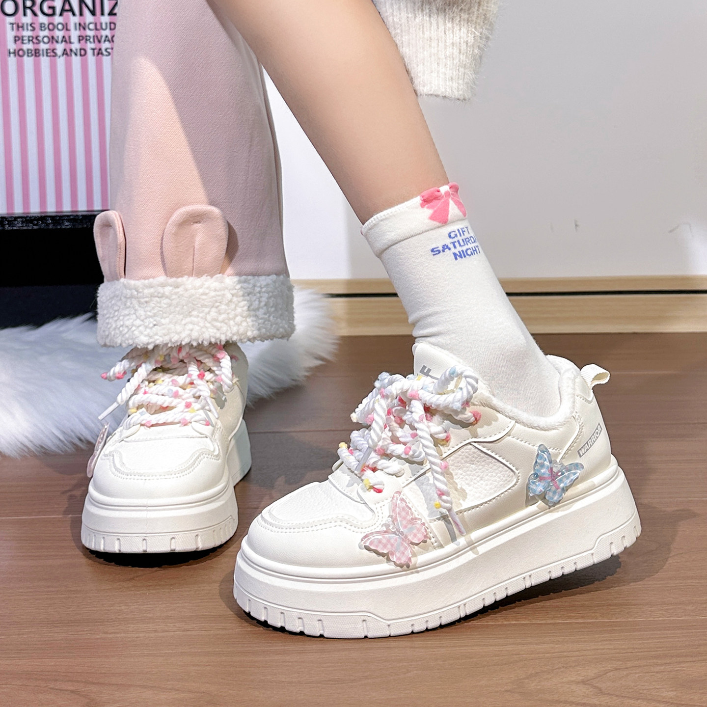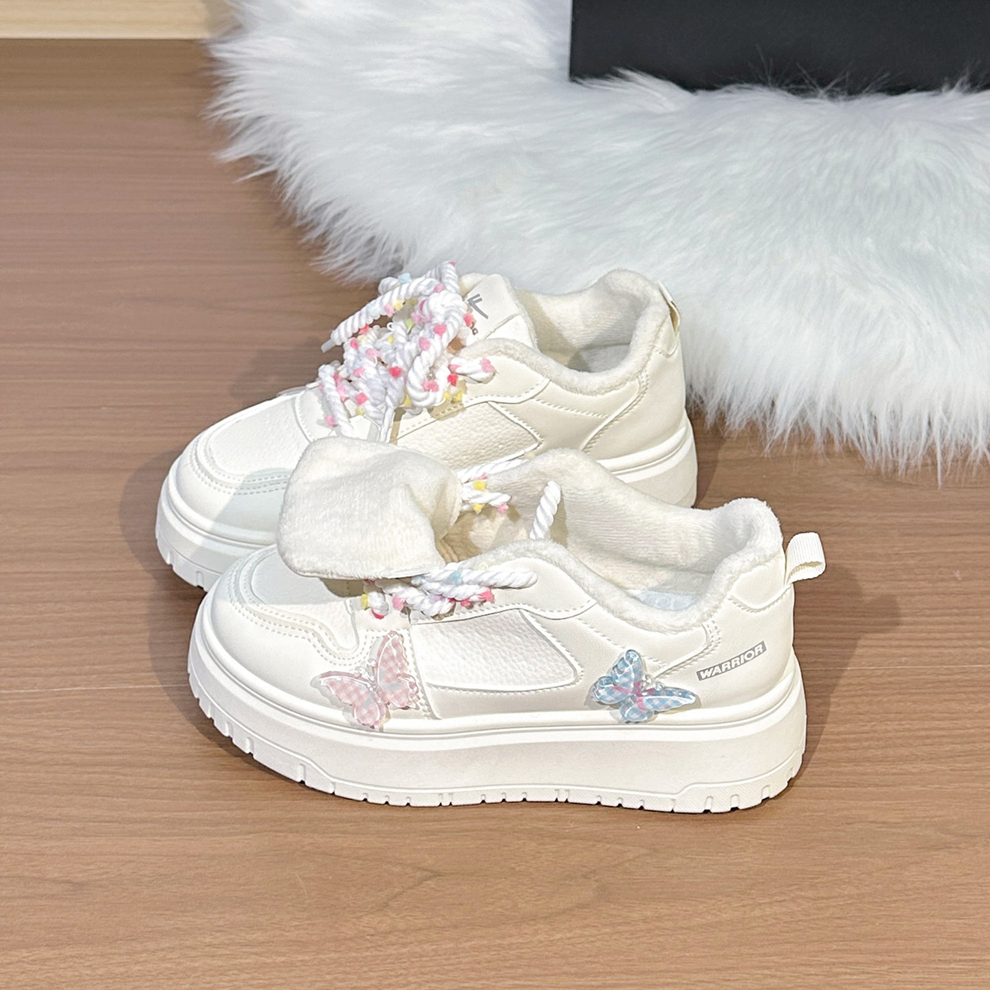 📚 回力原创蝴蝶加绒小白鞋女2025冬季新款厚底二棉鞋初中生保暖板鞋