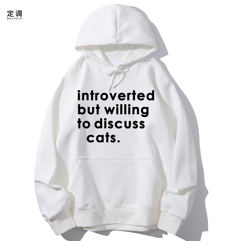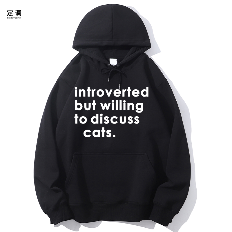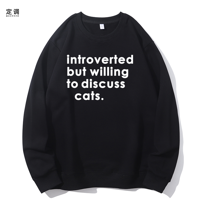 📚 introverted 内向但愿意讨论猫狗圆领卫衣帽衫diy