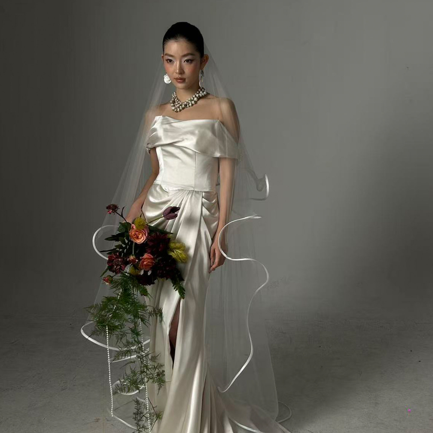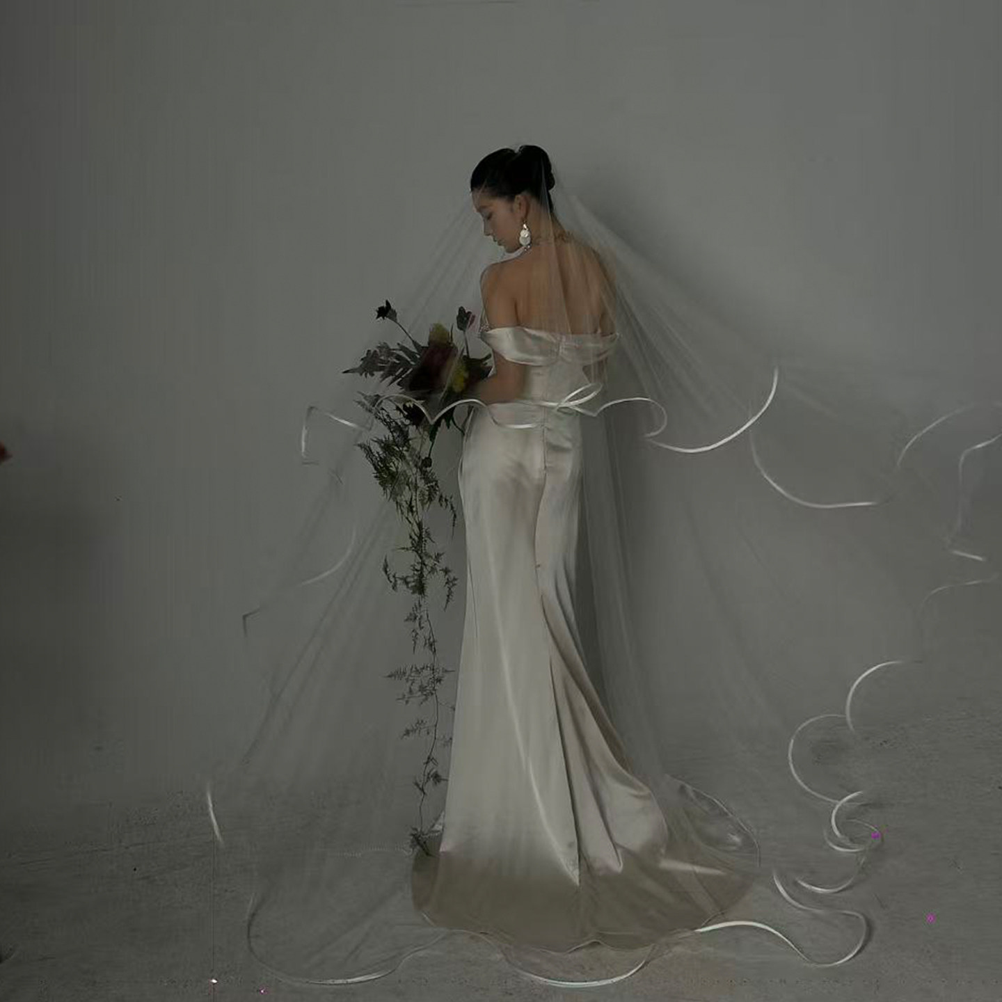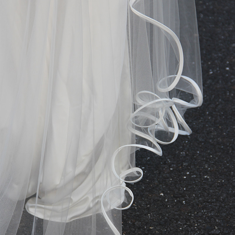📚 Mi唐手作婚礼头纱新娘主婚纱领证求婚头纱高级感大拖尾软纱波浪边