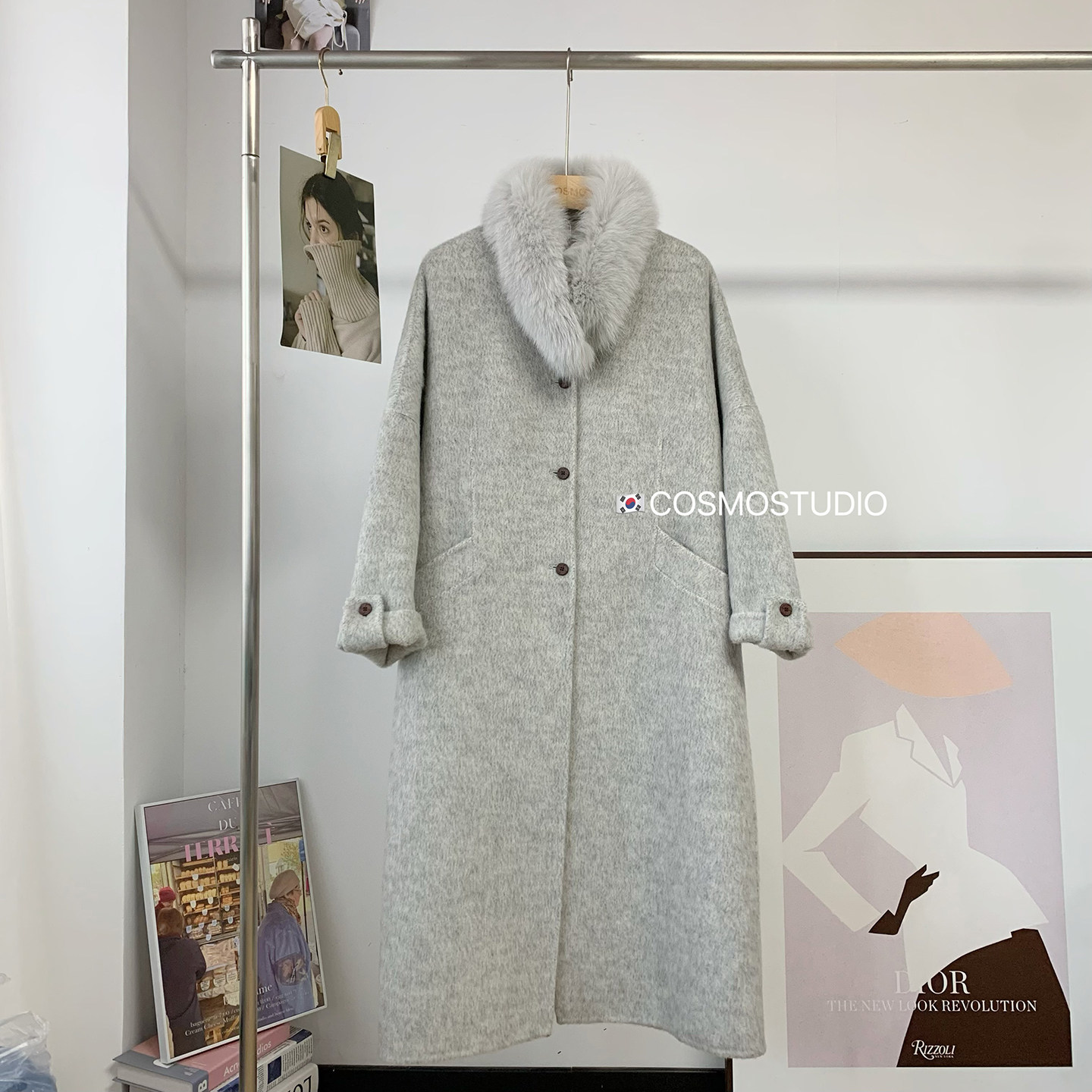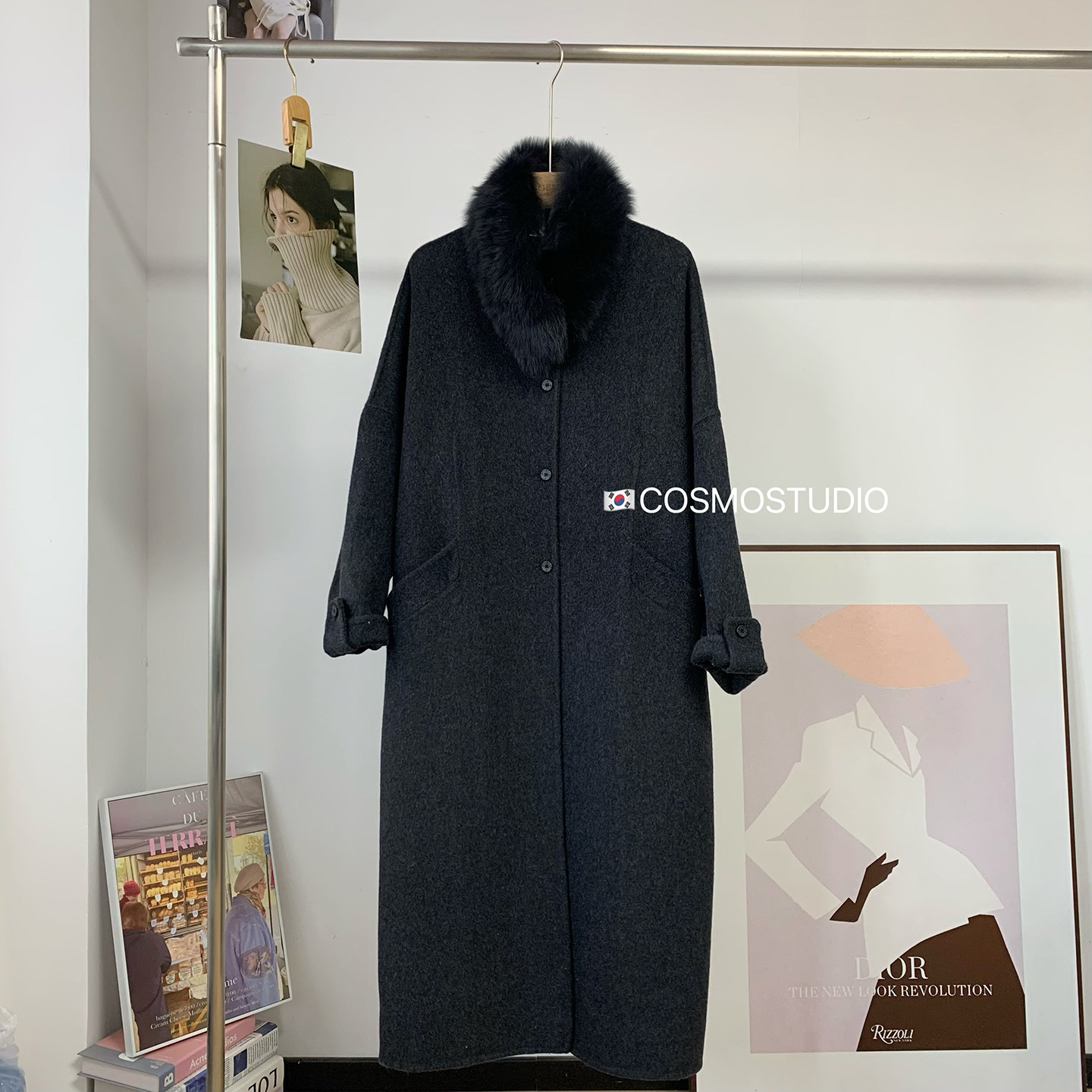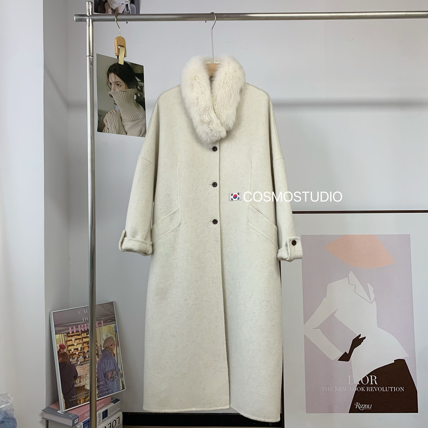 📚 韩国东大门狐狸毛领围巾双面羊绒毛呢大衣外套女中长款气质2025冬