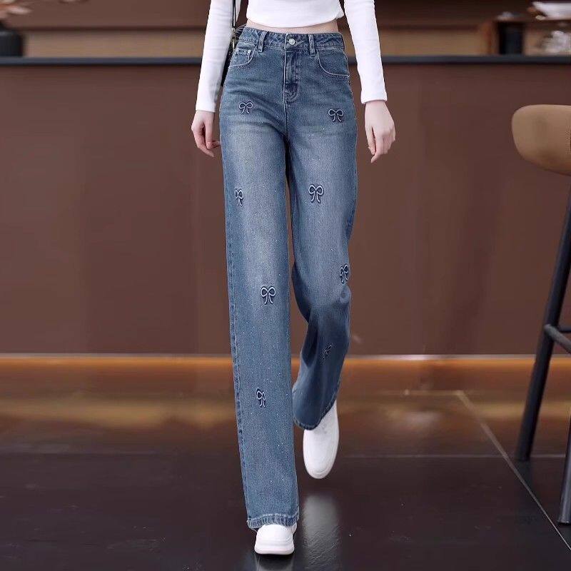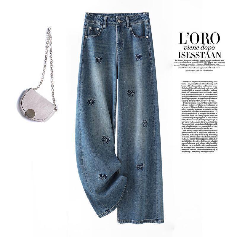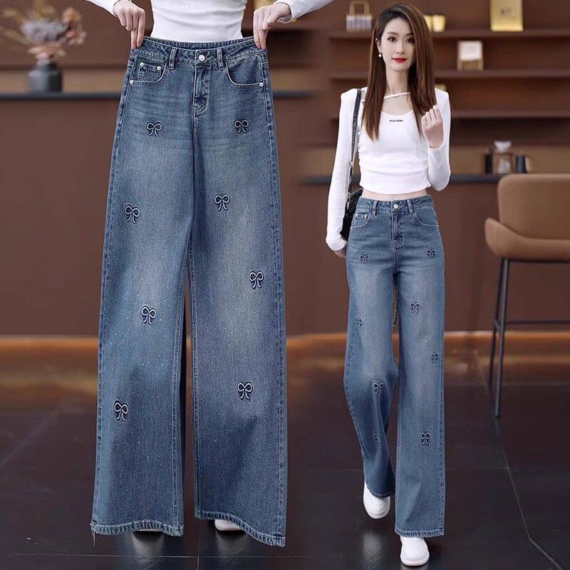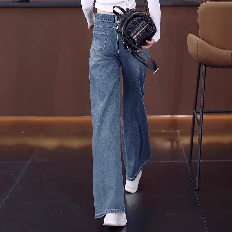 📚 广州新塘镇阔腿牛仔裤女高腰2025年春秋冬季新款垂感宽松直筒裤子