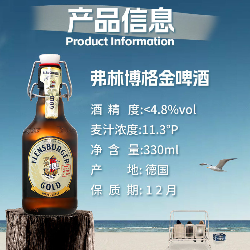 📚 德国进口弗林博格小麦白啤金比尔森精酿啤酒弗伦斯堡330ml熟啤酒