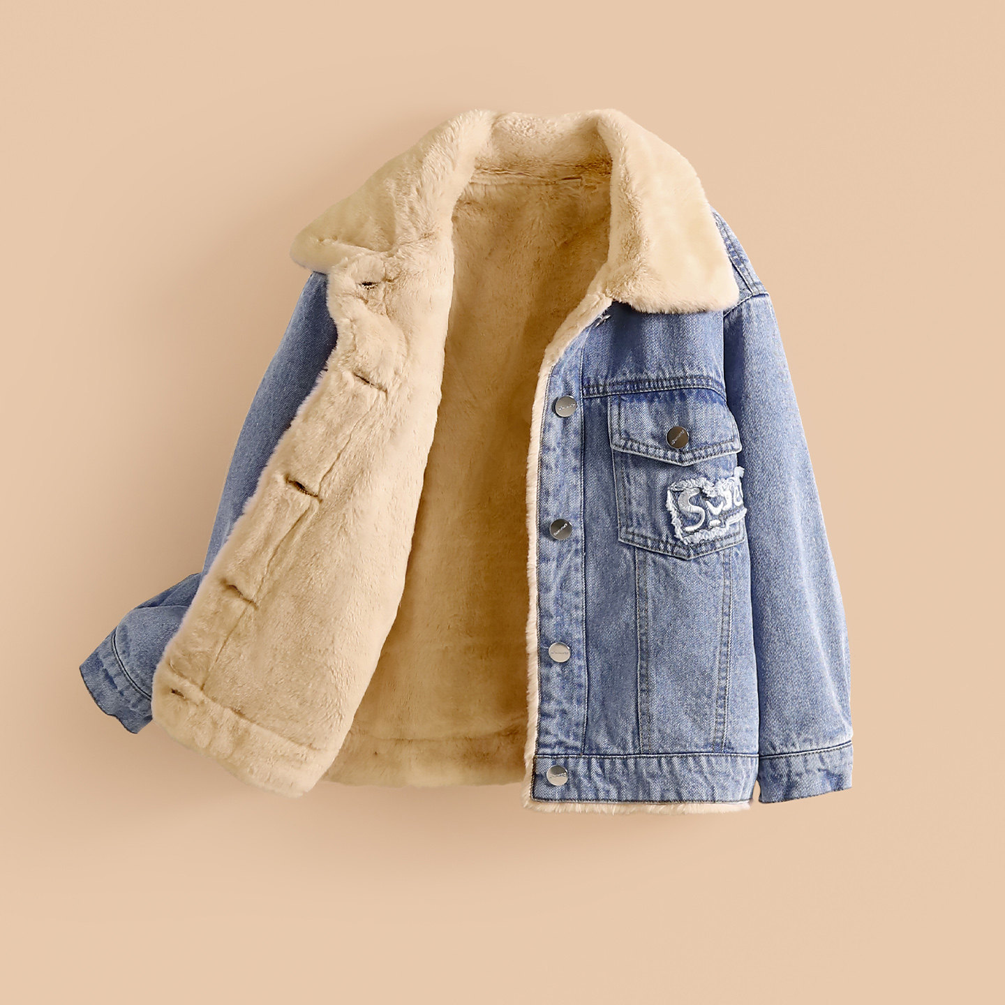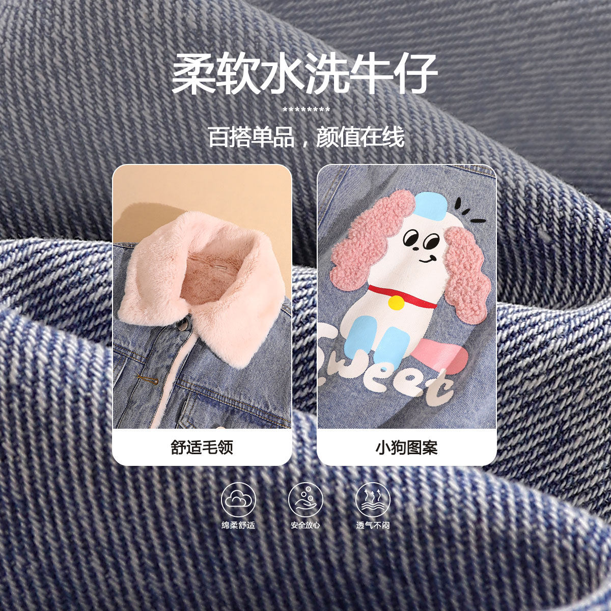 📚 小虎帕蒂秋冬装女童卡通小狗加绒牛仔外套中大童纯棉百搭上衣夹克
