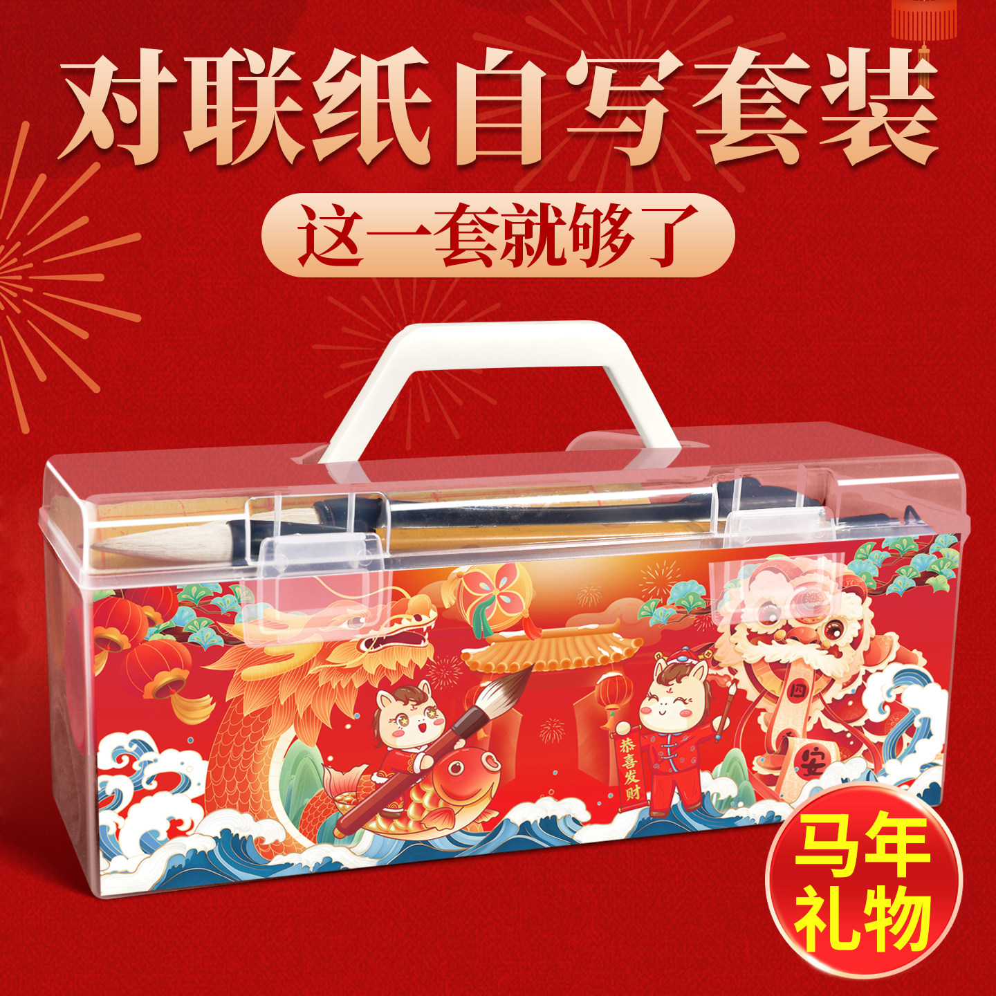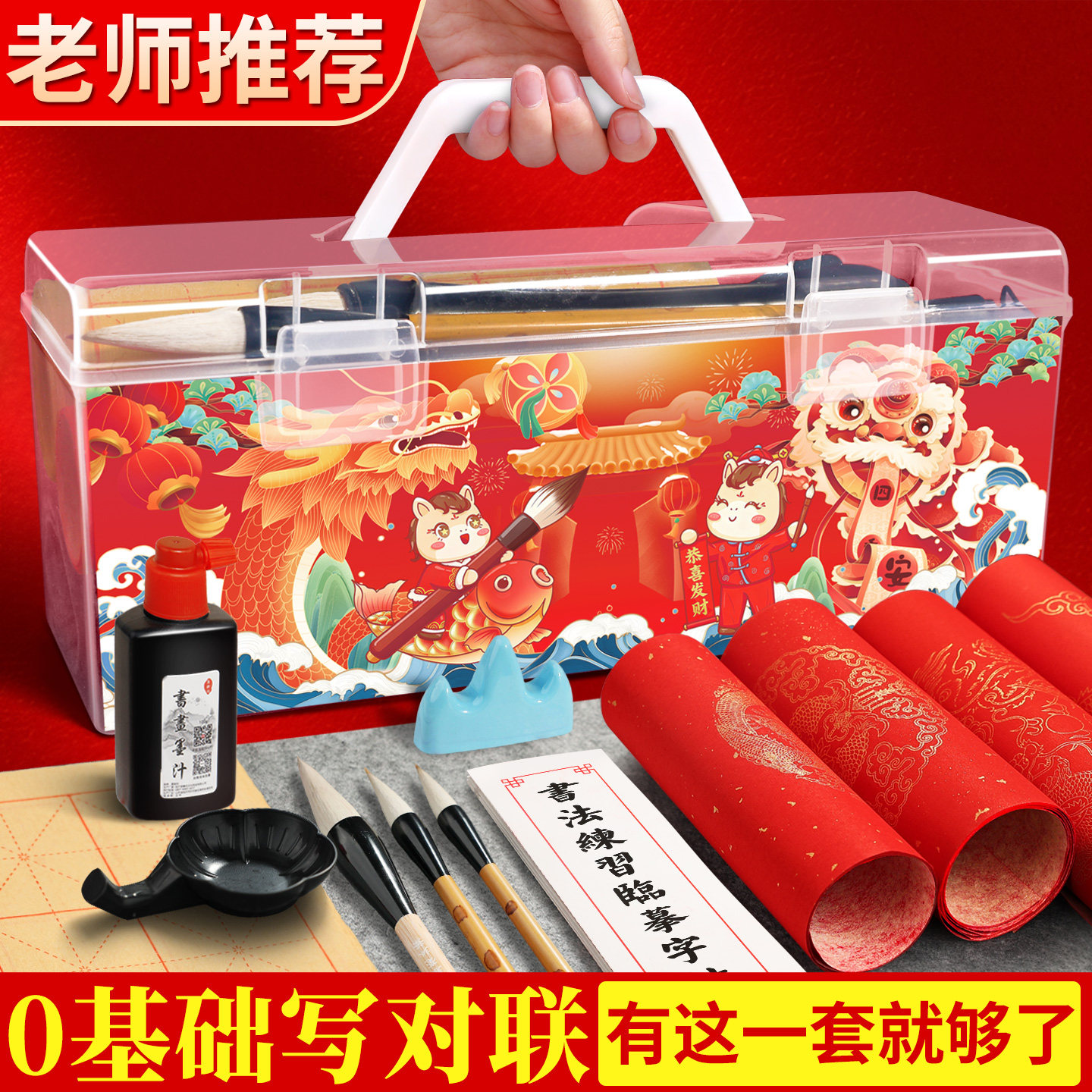 📚 2026自写套装春联纸对联毛笔儿童练毛笔字书法专用初学者用笔墨纸砚手写笔墨全套工具对联纸福字红纸临摹描红