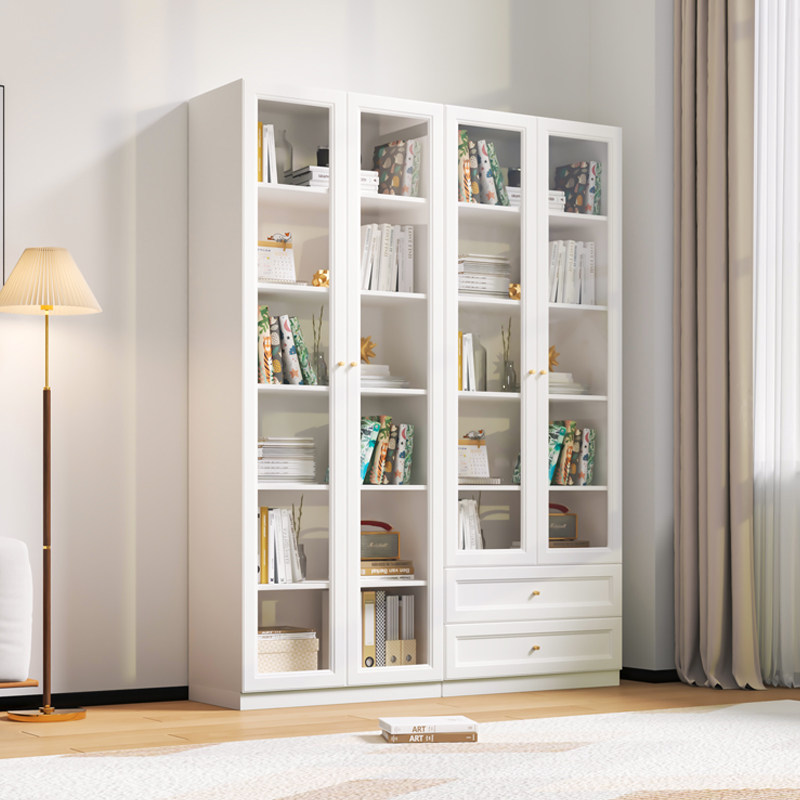 📚 可比熊实木书柜展示柜家用书架带玻璃门客厅落地组合柜一体置物架