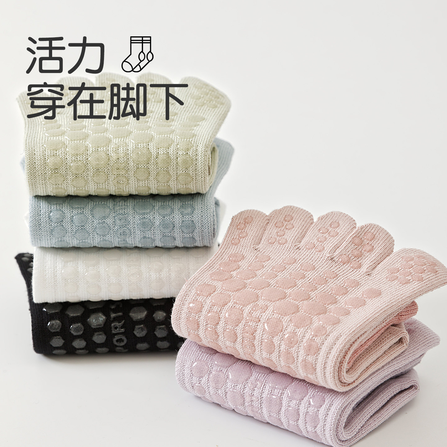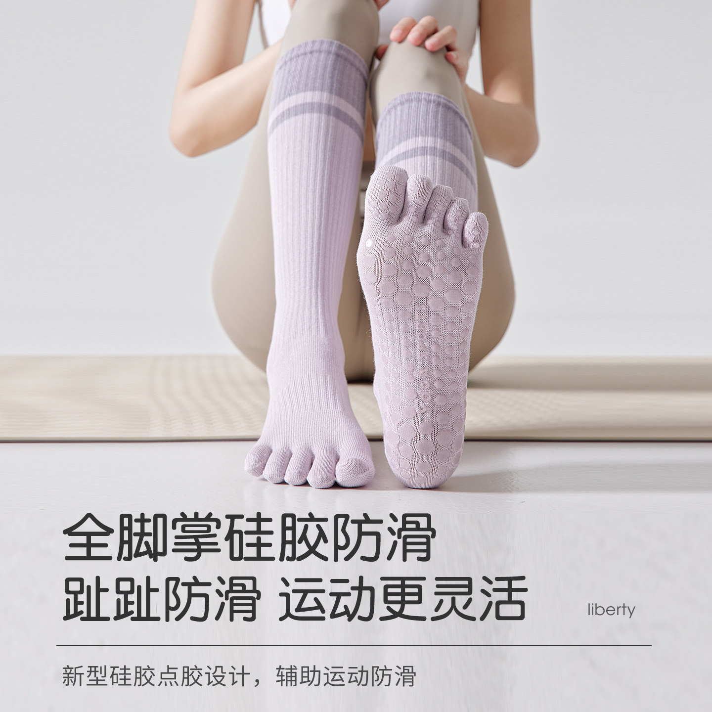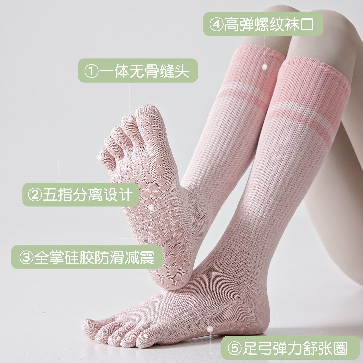 📚 五指普拉提袜子春夏防滑地板健身运动分趾长袜专业压力瑜伽小腿袜