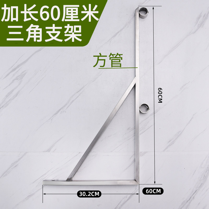 📚 阳台固定不锈钢方管三角晾衣架晾衣杆晾晒被子侧装支架双杆60厘米