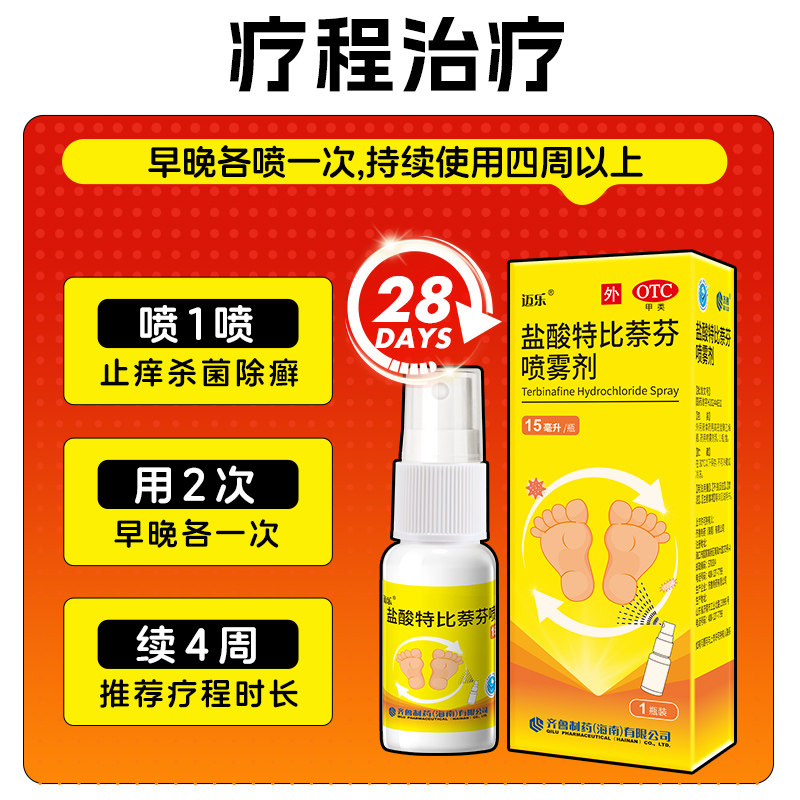 📚 齐鲁迈乐盐酸特比萘芬喷雾齐鲁正品治脚气喷雾脱皮杀菌真菌