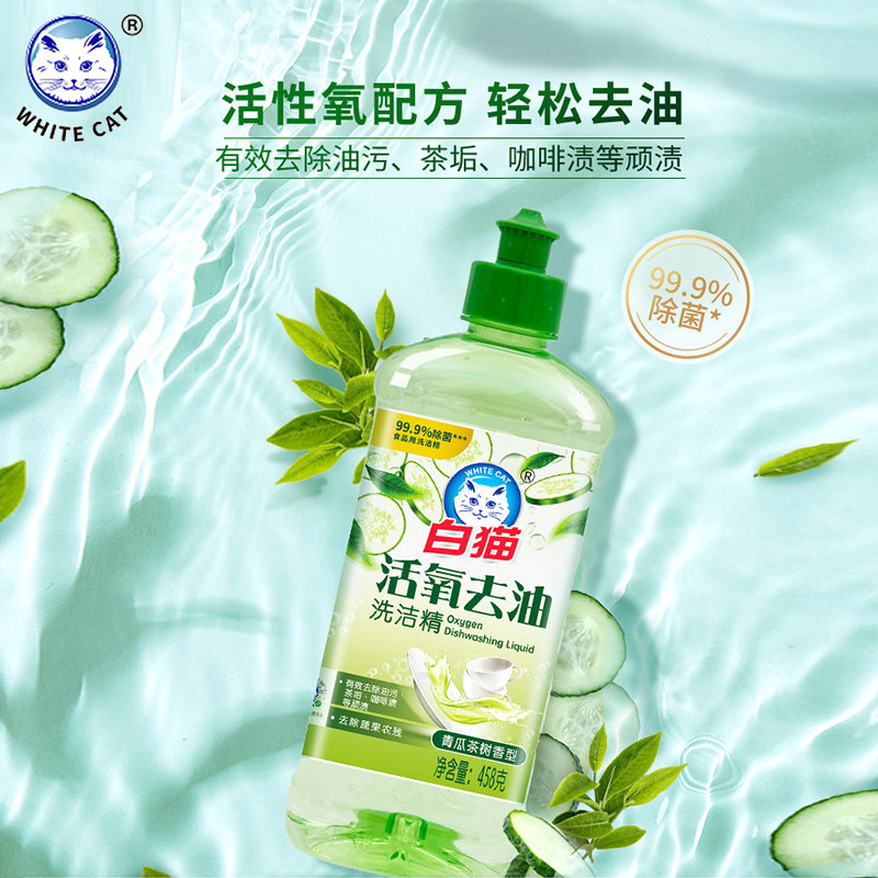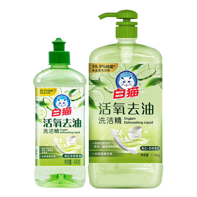 📚 白猫活氧去油洗洁精1.15kg+458g家用洗碗液餐具洗涤剂青瓜茶树香