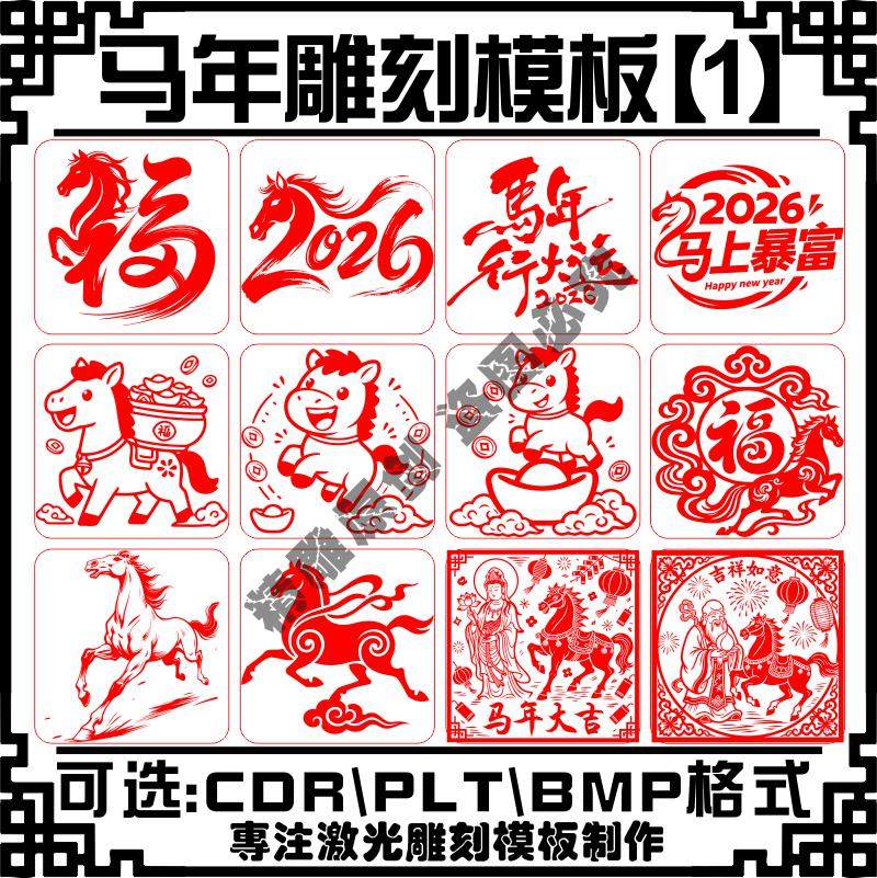 📚 激光雕刻打标机2026马年印章卡通矢量文件刻字图库模板艺术字素材