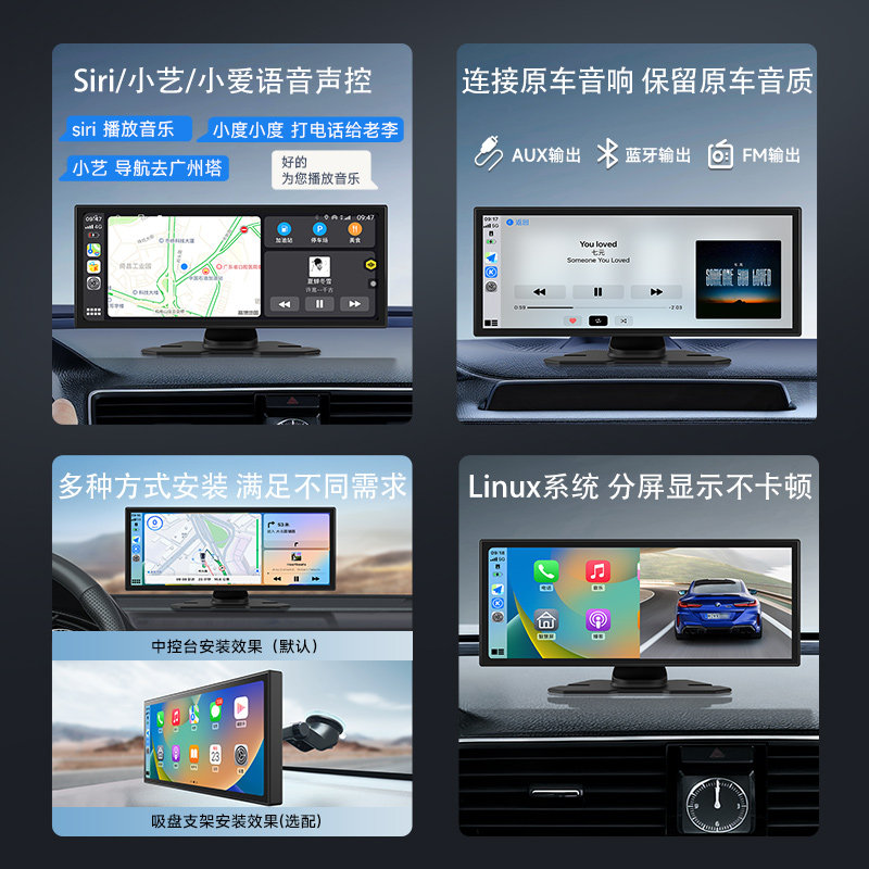 📚 九音无线Carplay便携屏车载导航仪Hicar智慧屏行车记录仪一体机