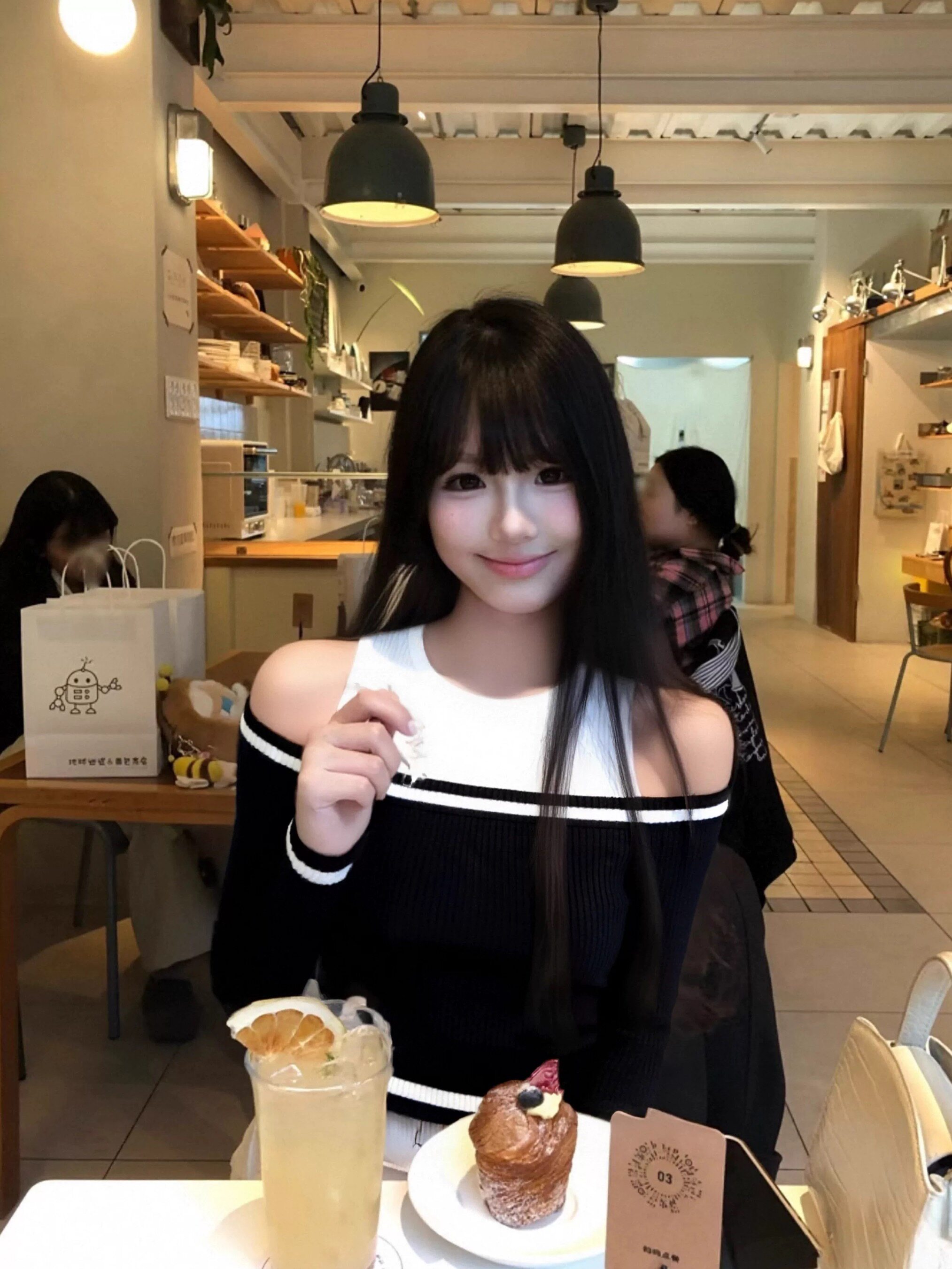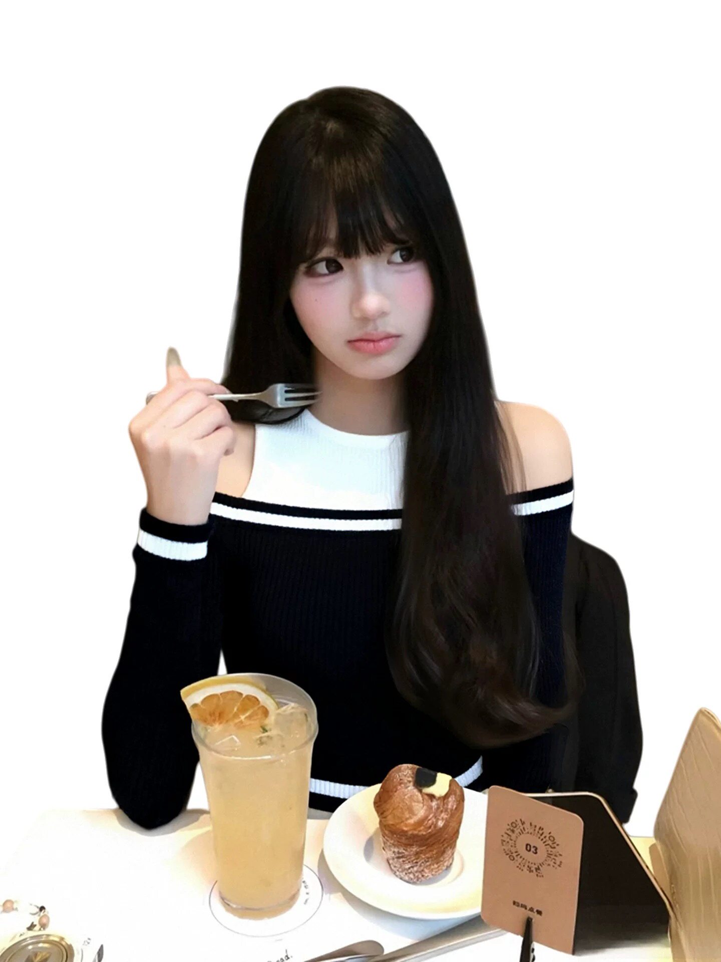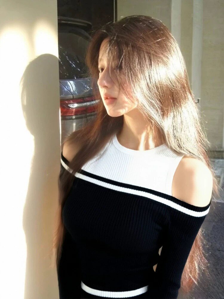 📚 黑白撞色一字肩针织衫女秋冬新款设计感小众修身显瘦露肩打底上衣