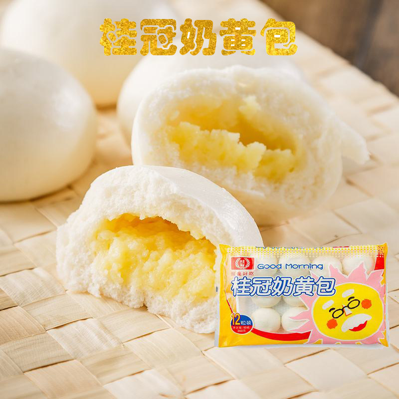 📚 桂冠360g奶黄包12粒装 速食早餐包子方便速冻包子点心夜宵
