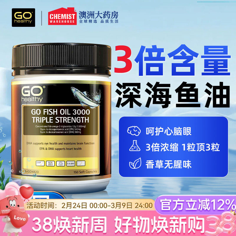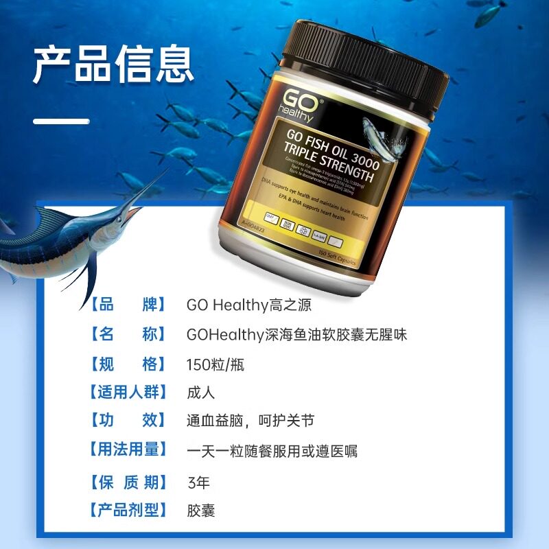 📚 GO Healthy深海鱼油omega3高浓度软胶囊中老年高之源进口部分临期
