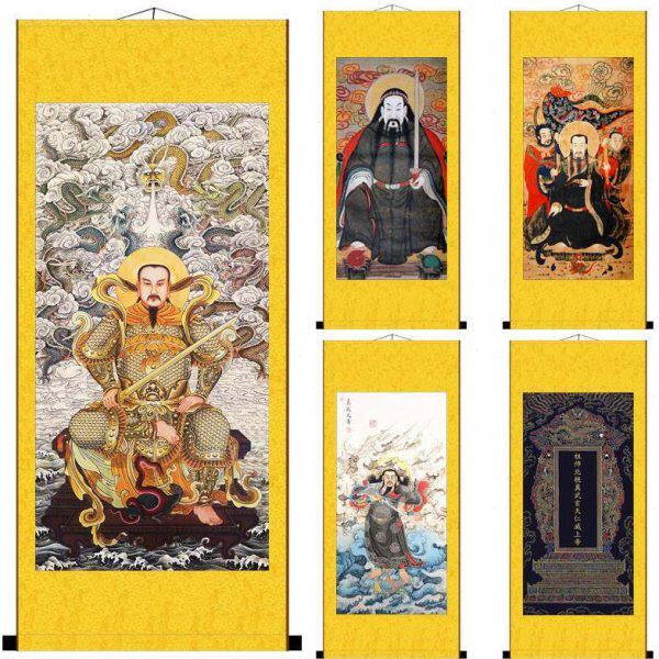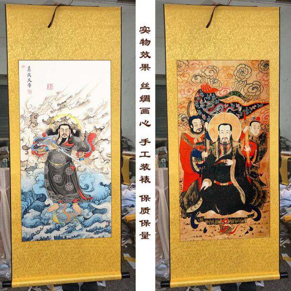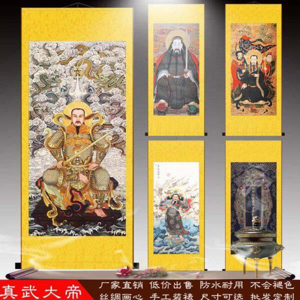 📚 新款真武大帝画像 玄天上帝神像玄关装饰画 丝绸卷轴挂画国画包邮