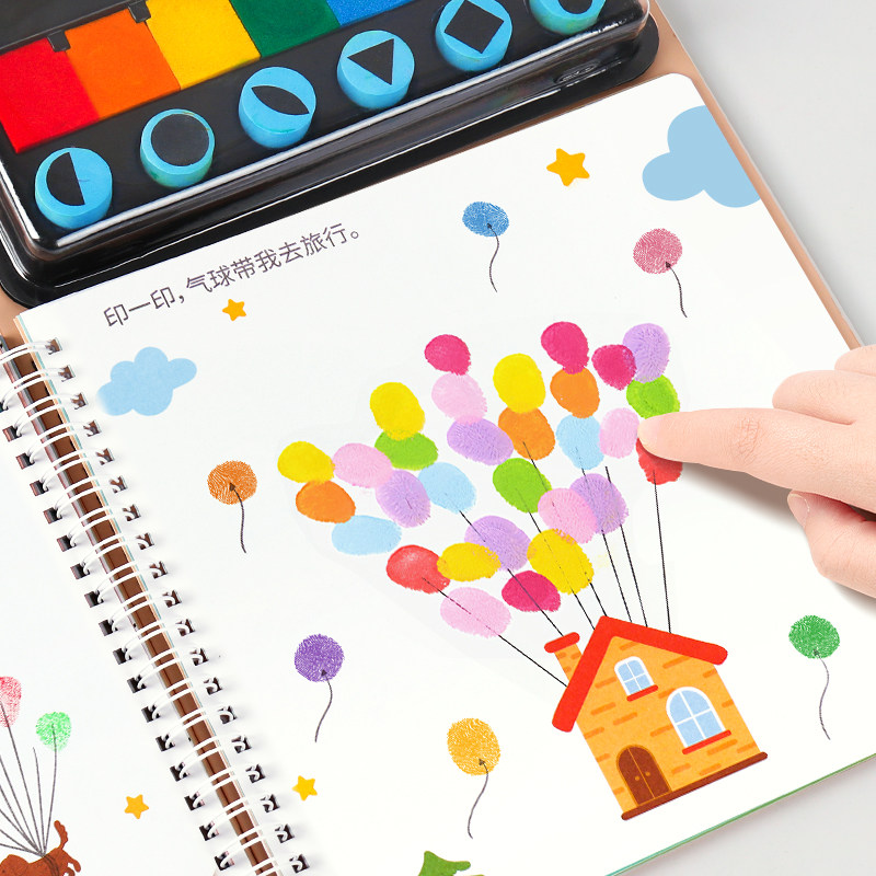 📚 儿童手指画画本涂鸦创意宝宝指印点画颜料3岁幼儿园便携印泥套装