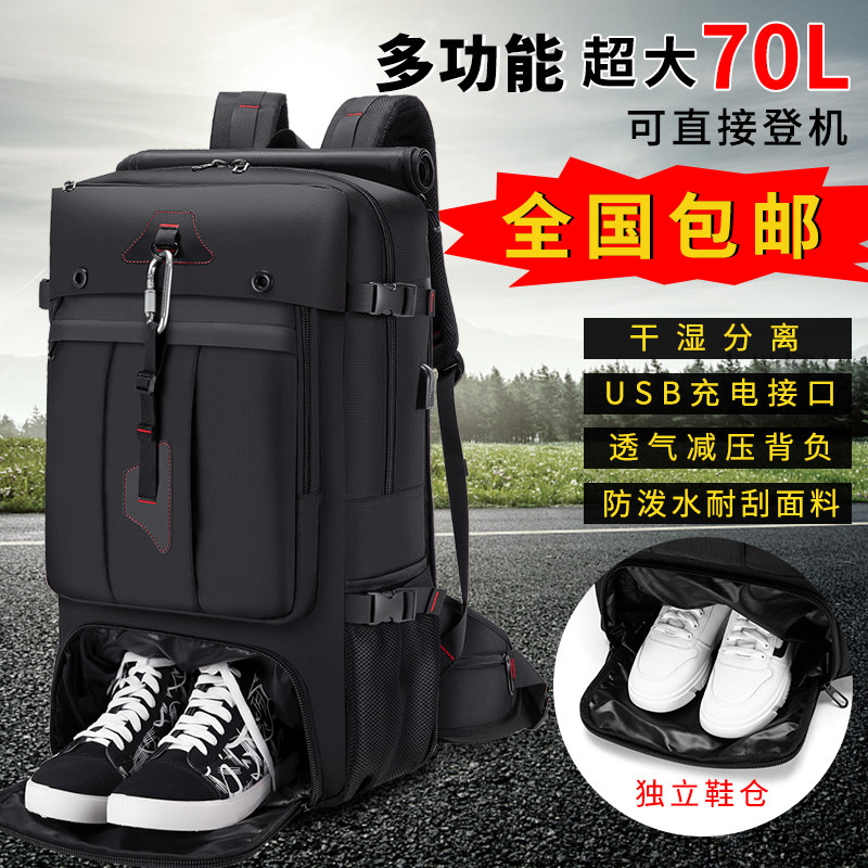 📚 男士高端特大号防水旅行包收纳包大容量超大背包双肩包70升旅游