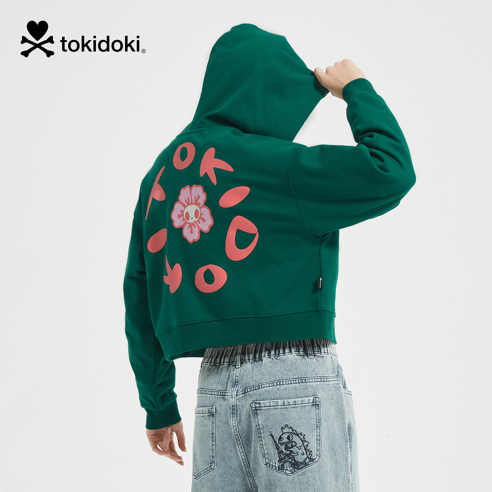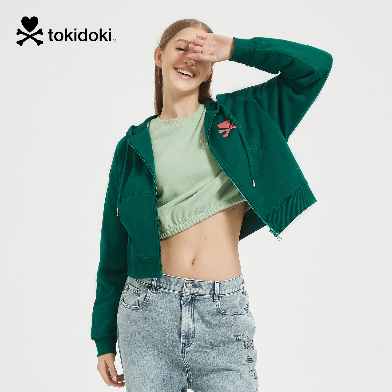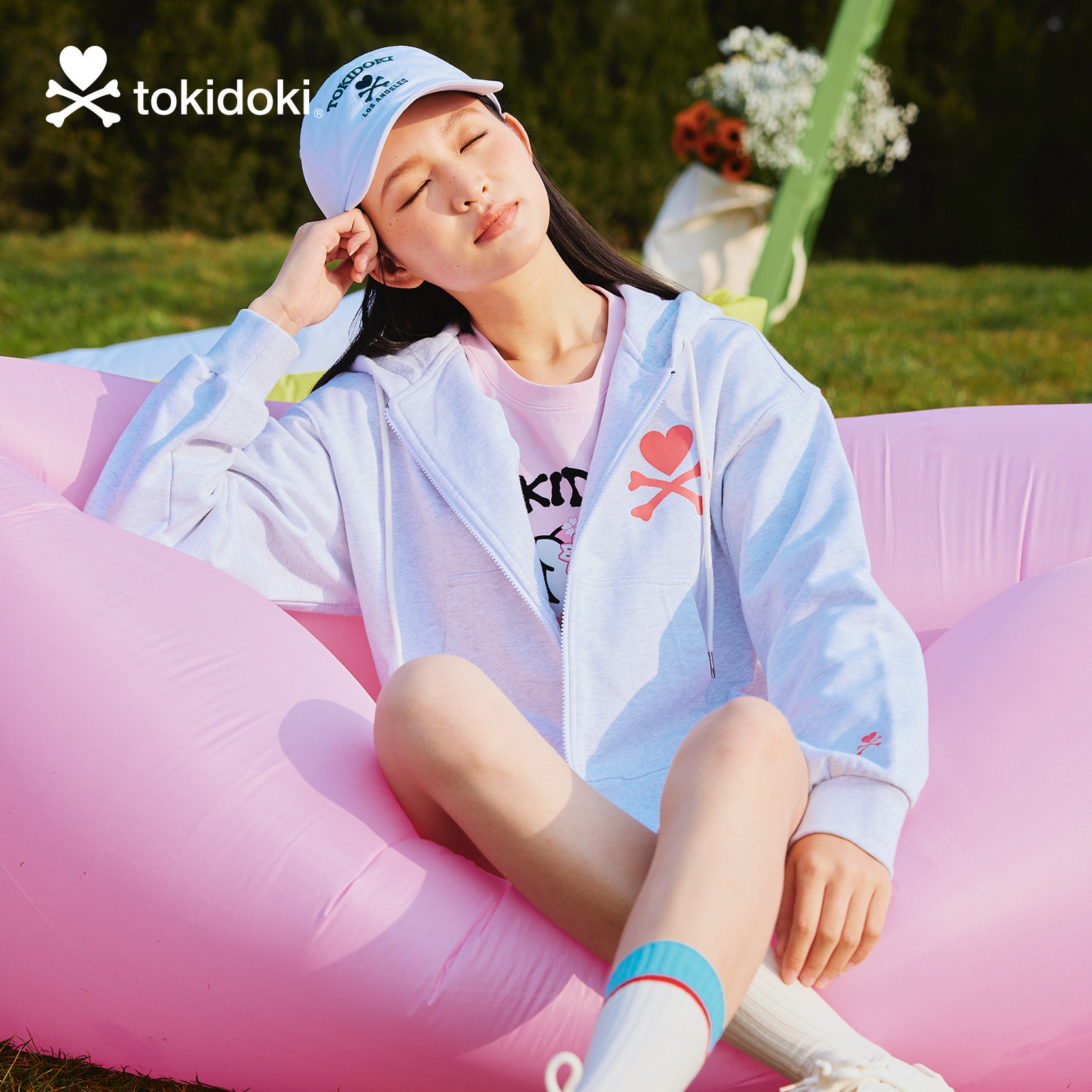 📚 tokidoki卫衣外套女短款2024春季新款学院风落肩连帽拉链开衫潮