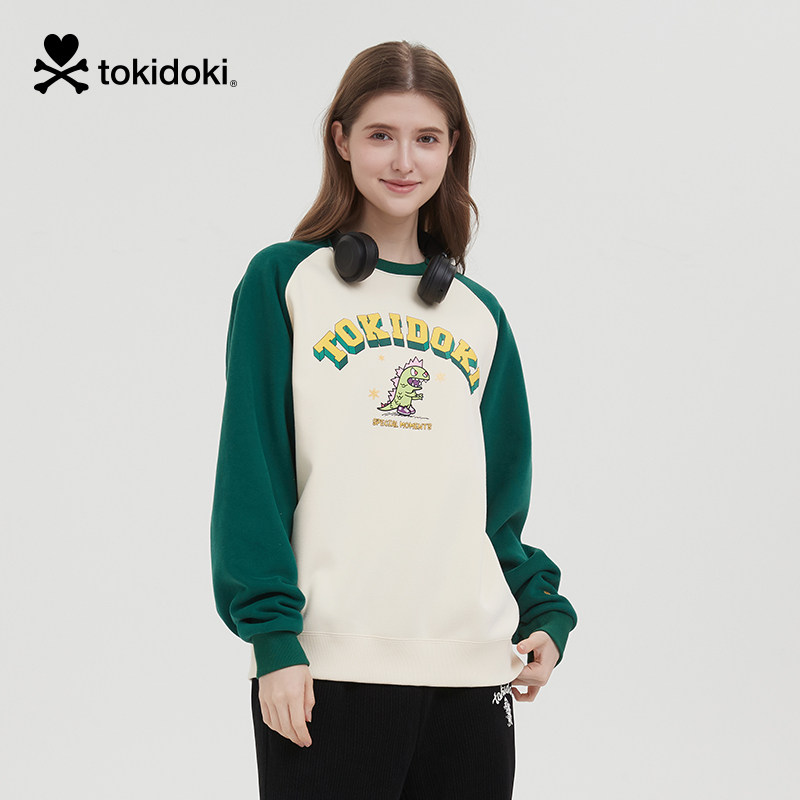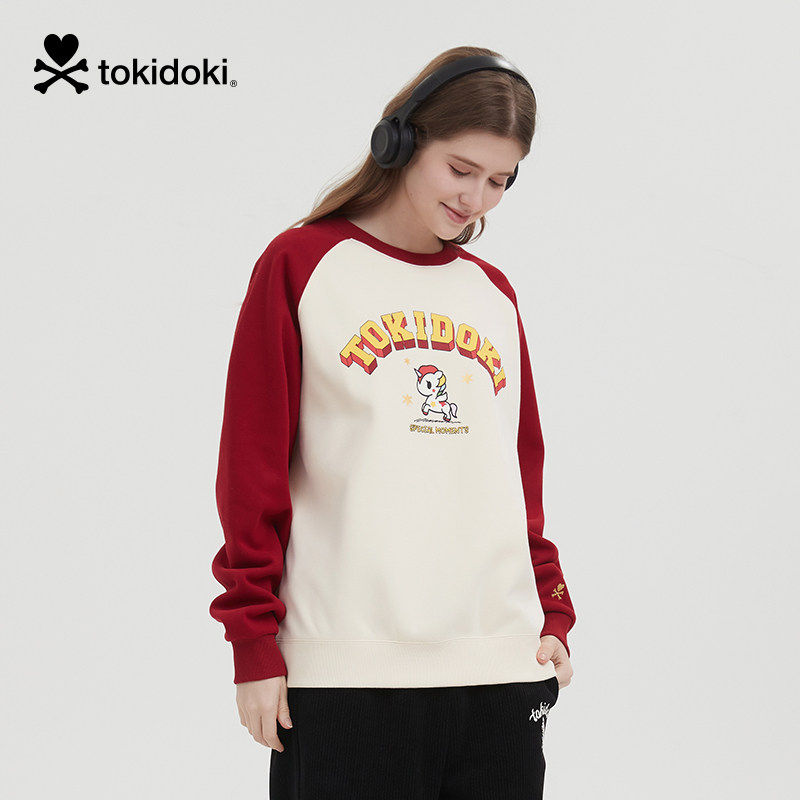 📚 tokidoki淘奇多奇前胸印花插肩袖卫衣2024新款加绒男女圣诞上衣